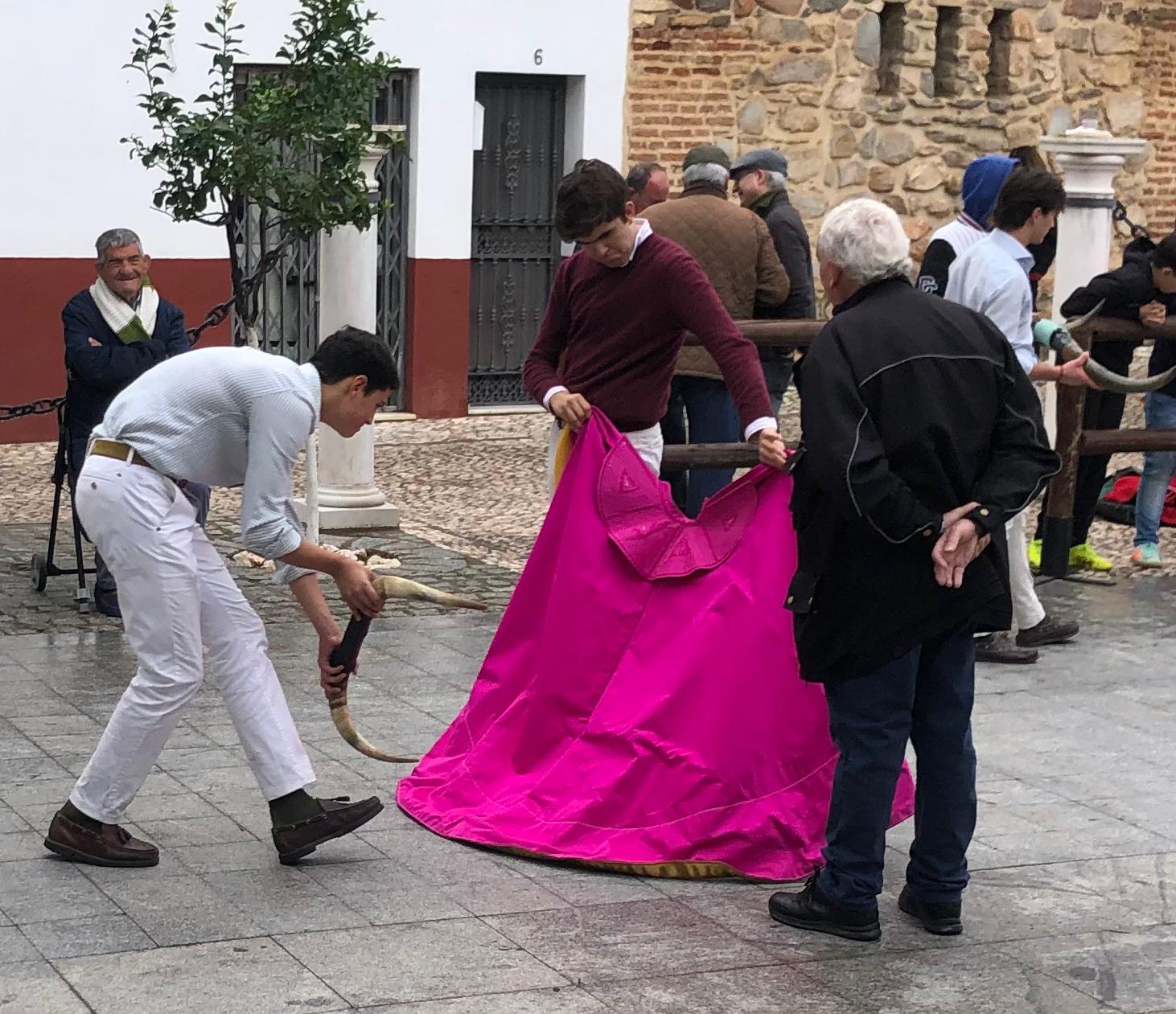 Algunos de los asistentes se atrevieron a mover los capotes. Sin duda, estas son las raíces de nuestra fiesta y esta es la forma de revivir la cultura del toreo en todos los rincones de cada pueblo.