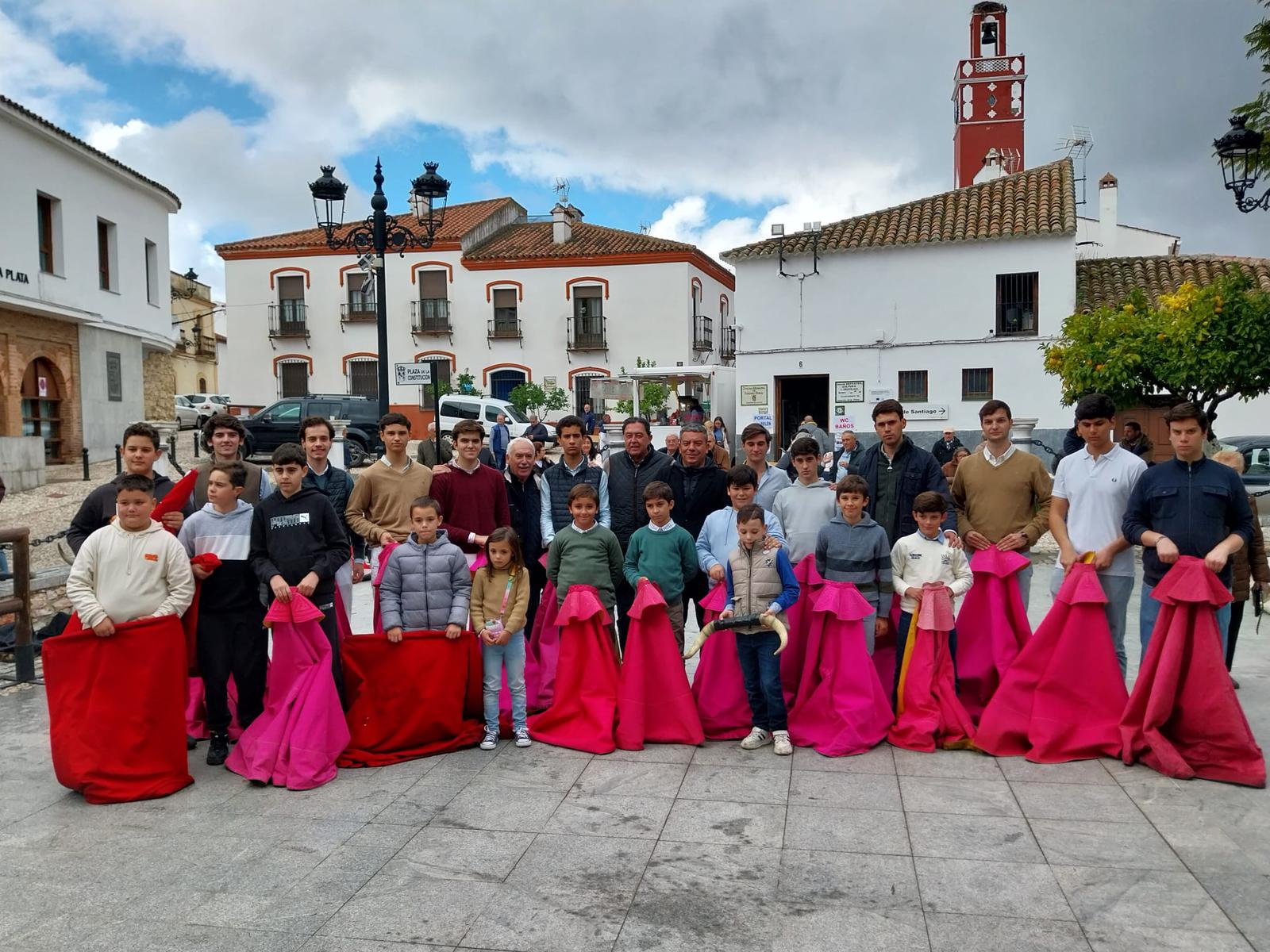 Buena parte de los alumnos de la escuela que dirige D. Tomas Campuzano, estuvieron demostrando los primeros pasos, como se inician los chavales que quieren hacerse toreros. Todos ellos han estado bajo la dirección de su profesor, haciendo una demostración de cómo tienen que mover, capotes y muletas. El objetivo, que cada chaval pueda expresar sus sueños y sus sentimientos como toreros.
