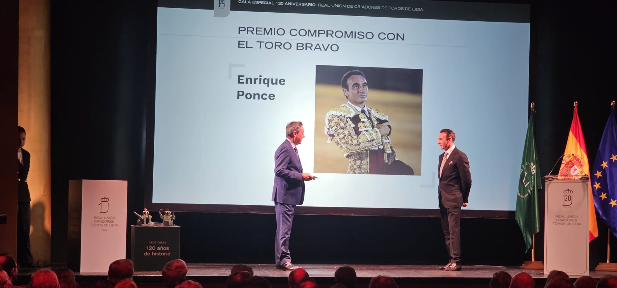 Enrique Ponce es el toreo con mayúsculas en las últimas cuatro décadas pulveriza todos los números, triunfador en todas las fiestas que se anunció. Antes de dejar los ruedos ya era historia y su compromiso es incuestionable. El diestro de Chiva recibió el premio de Antonio Bañuelos, quien contó una anécdota en cuanto a su generosidad a las ganaderías pequeñas y por todo lo que ha hecho por la Fiesta. El maestro reconoció que el premio que recibía es muy importante, definiéndose como un admirador del toro bravo y de quien lo cría. «Soy ganadero y se lo difícil que es criar al toro bravo, el amor y pasión que se le pone. Agradezco este premio de una manera muy especial y agradecer a todos los ganaderos y en especial a los ganaderos que he toreado sus toros durante tantos años, en España y en América. Si no fuera por ese toro que sale cada tarde y que nos permite crear esa obra de arte, no sería posible. Vamos a seguir defendiendo esto y dar la cara, sintiéndonos orgullosos de que un animal tan bello represente a nuestro país», culminaba.
