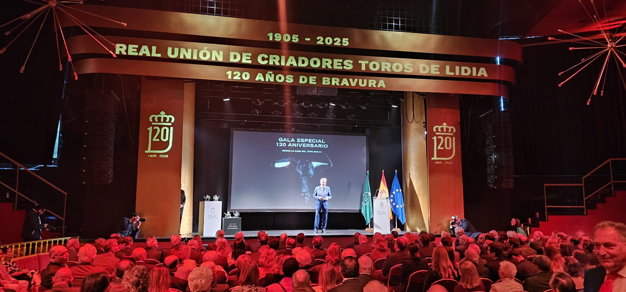 La Real Unión de Criadores de Toros de Lidia ha celebrado, este lunes 19 de mayo, sus 120 años de historia con una gala que reunión a los máximos representantes de la Tauromaquia. La Sala Florida Park fue el epicentro de la Fiesta Brava.