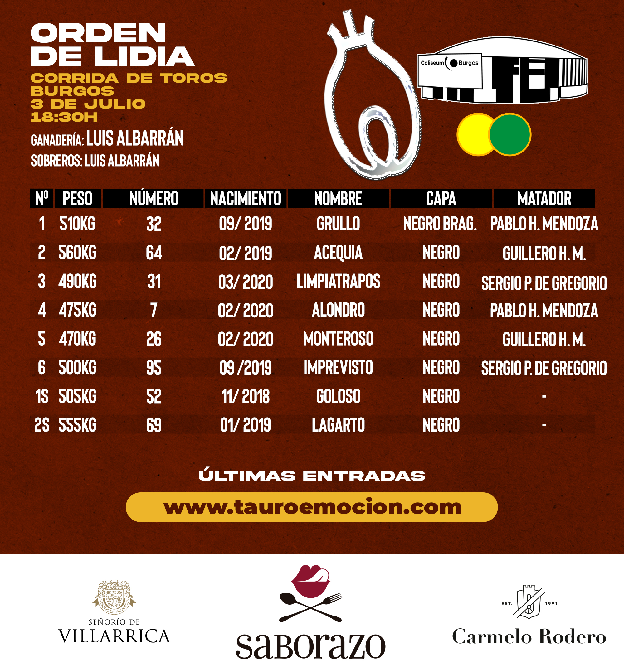 Orden de lidia para Burgos