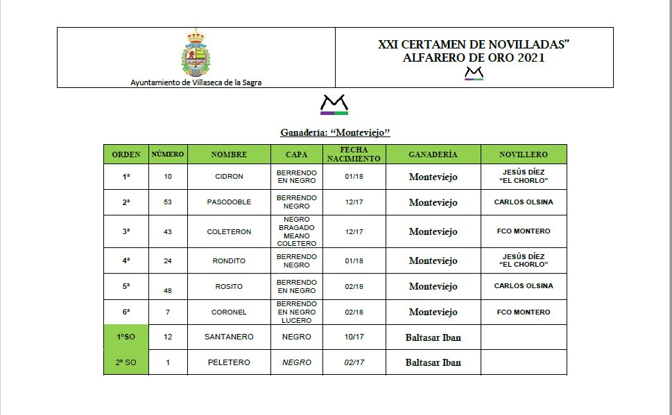 «Cidrón» de Monteviejo será el encargado de abrir plaza para el festejo que se celebrará en Villasecade la Sagra. Jesús Díez «El Chorlo», Carlos Olsina y Francisco Montero serán los encargados de realizar el paseíllo.