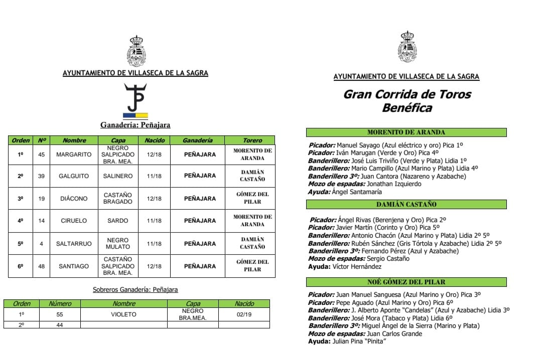 Orden de lidia para Villaseca de la Sagra