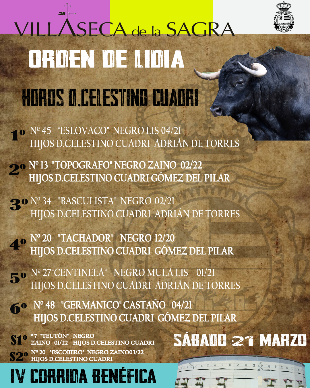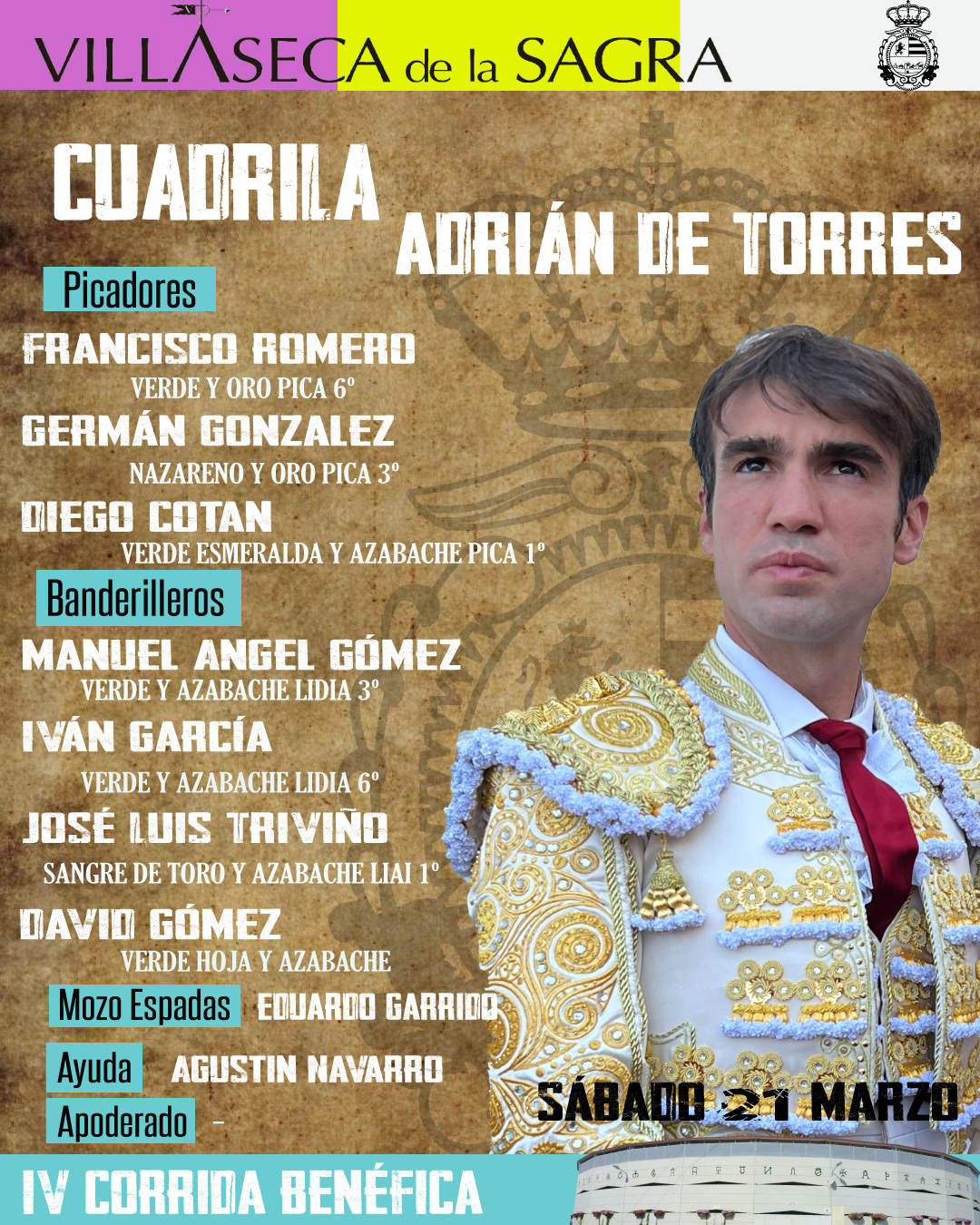 Orden de lidia y cuadrillas para Villaseca de la Sagra