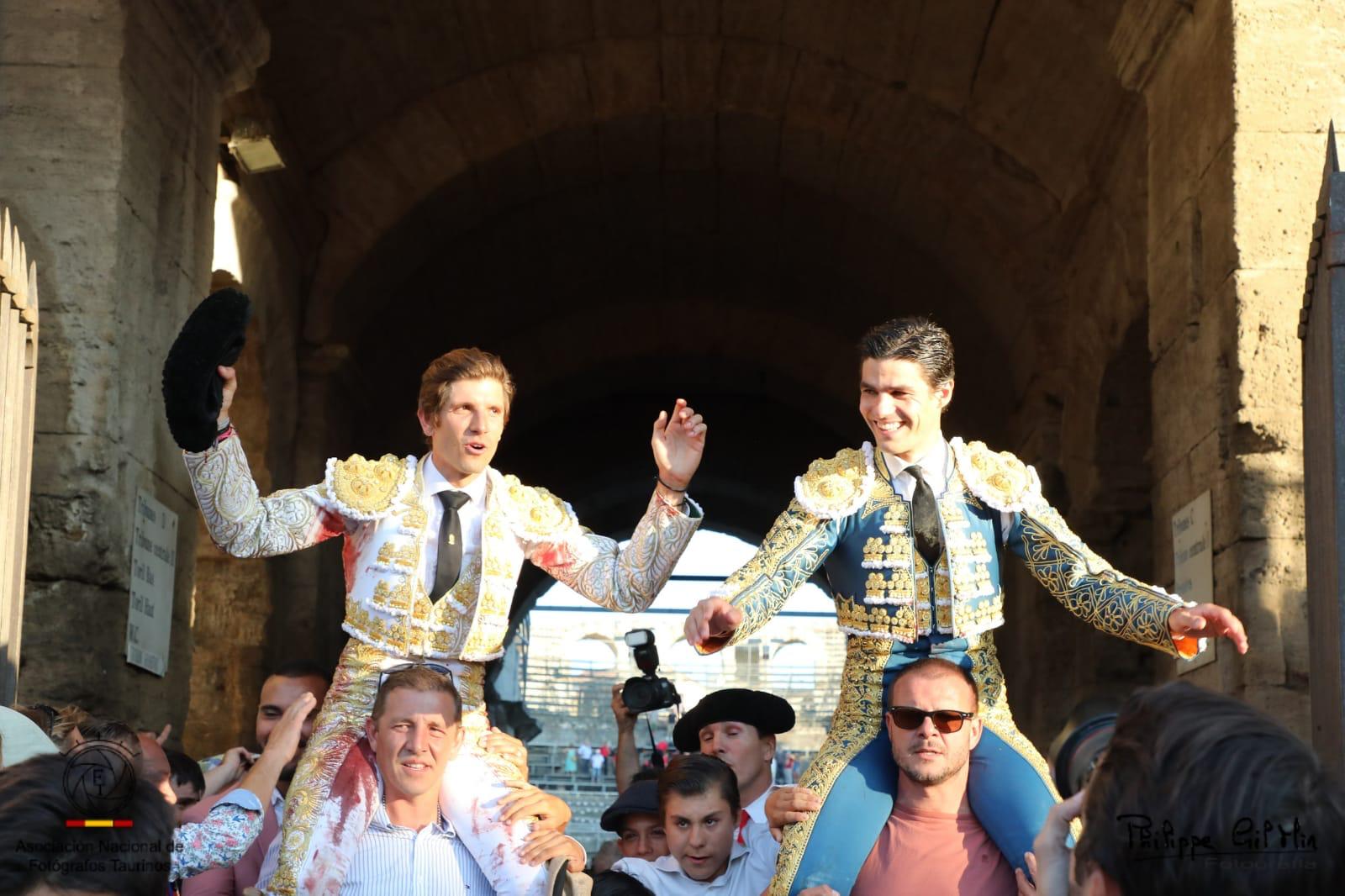 Pablo Aguado y Maxime Solera, nombres propios que quedaran para el recuerdo del coliseo de Arles. El sevillano dejó una faena en la que llevó al respetable hasta aquella tarde en La Maestranza, cuando se sintió el toreo. El francés, por su parte, tomaba la alternativa entre triunfos. El cartel lo completaban Morante de la Puebla, en sus manos la magia de mecer el capote, con unos lances alejados de lo mundano. Se lidiaron los astados de La Quinta, que estuvieron bien presentados, dando juego. Aguado hizo la faena de la tarde frente al segundo de su lote, saliendo en hombros junto a Maxime Solera, que cortaron tres y dos orejas, respectivamente.