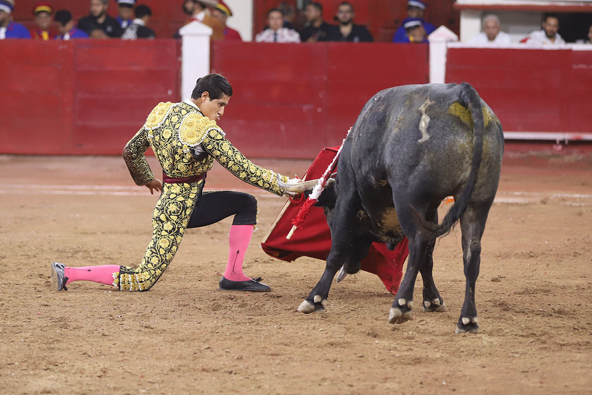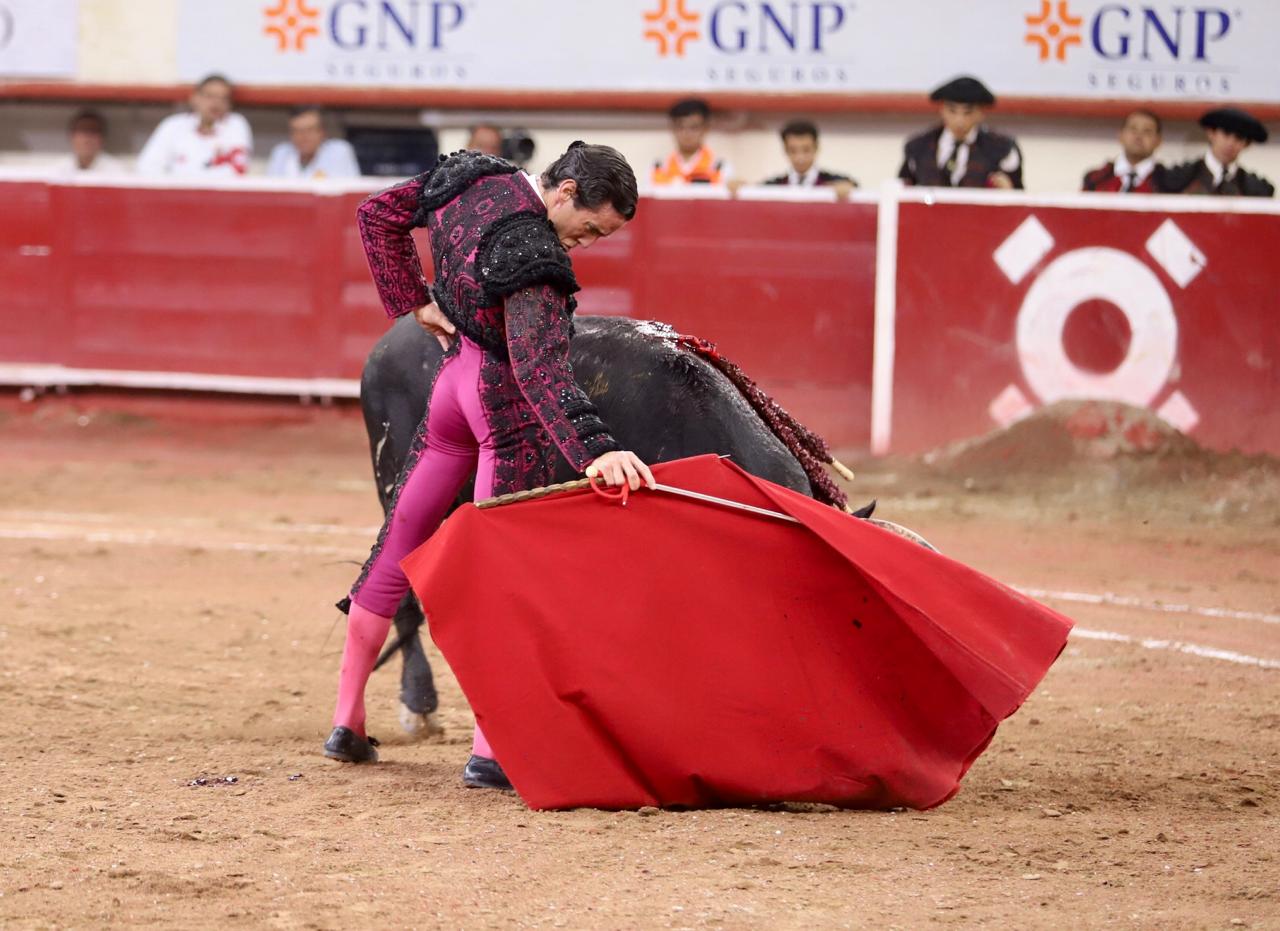 Ortega bregó al segundo de su lote. Brindó desde los medios para después irse a tablas e ir sacándolo por ayudados. Continuó por el derecho, tocando y estirándose a su paso y adornar el muletazo con torería y delicadeza. Le dio tiempo y sitio para insistirle sobre el mismo pitón, por el que encontró mayor acople y reconocimiento del público. Tanta suavidad quiso ponerle que terminó por desarmarlo. Aprovechó para cambiarle al natural, alargando el trazo, pasándolo de uno en uno, guiándolo con los vuelos, dándole amplitud a aquella delicada tanda. Decidió seguir sobre el izquierdo, llevándolo muy tapadito. Culminó con un abaniqueo y una estocada tras varios intentos.