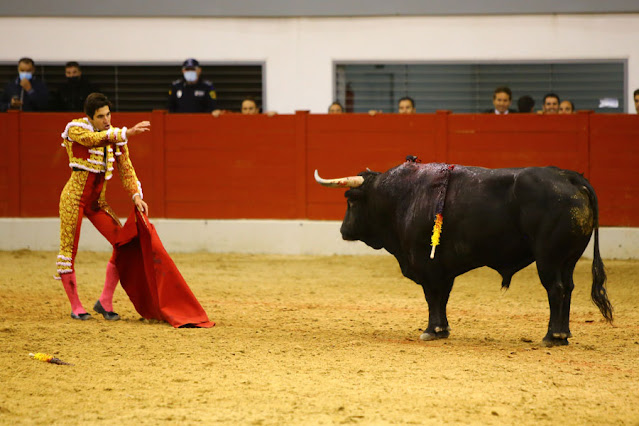 Salió el sexto para un Ginés Marín que salió a no dejarse ganar la pelea, lució de capa en el inicio y en el quite variado emocionante, para después iniciar su labor de muleta de rodillas en tablas. La faena fue a más ante otro buen ejemplar de Domingo Hernández, detalles con torería, actitud y al final una estocada en buen sitio fueron suficientes para pasear dos orejas.