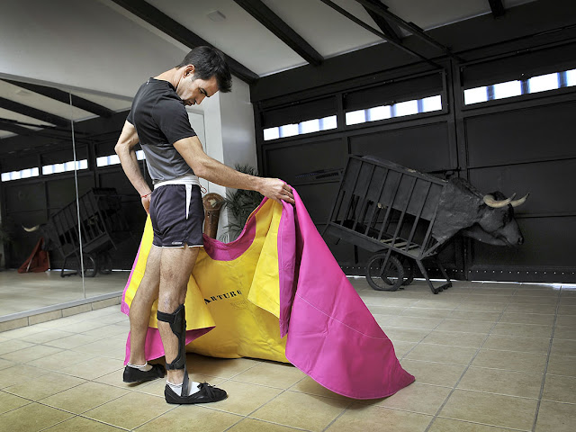 La función de la férula es sostenerle el pie a 90 grados ya que por la falta de movimiento y al no responder los nervios prácticamente le queda colgando, sin el aparato sería imposible poder torear.