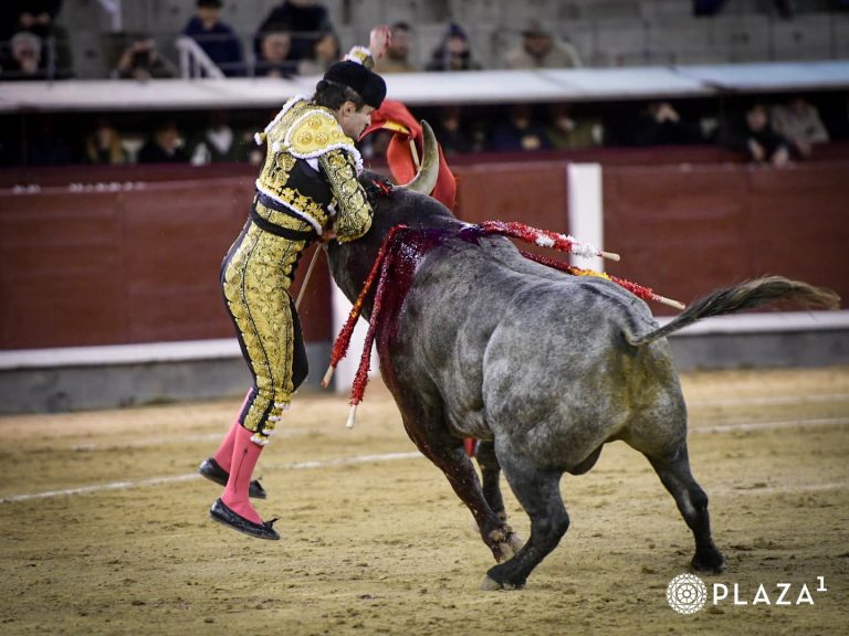 Salió el quinto, al que Damián Castaño recibió en su capote. Inició el tercio de muleta con suavidad y muy despacio, dándole sitio y tiempo para empezar a llevarlo sobre el pitón derecho, perdiéndole pasos, queriendo encontrar la distancia y la altura. Decidió torear con la montera puesta, midiéndose con un ejemplar que le buscaba en la salida, quedándose corto y soltando la cara. Las tandas fueron intermitentes e inciertas, pues el de Adolfo se le metía por dentro continuamente. Cambió al derecho de nuevo en un tira y afloja de poder a poder, sin evitar que le buscara y que lo desarmada. Cada vez se le quedaba más corto, pero eso no evitó que Castaño decidiera apostar y exponer en exceso. Terminó por prenderlo y herirlo tras sucesivos avisos. Tuvo que salir a matarlo Rafael de Julia, que no terminó de encontrar el punto al acero.