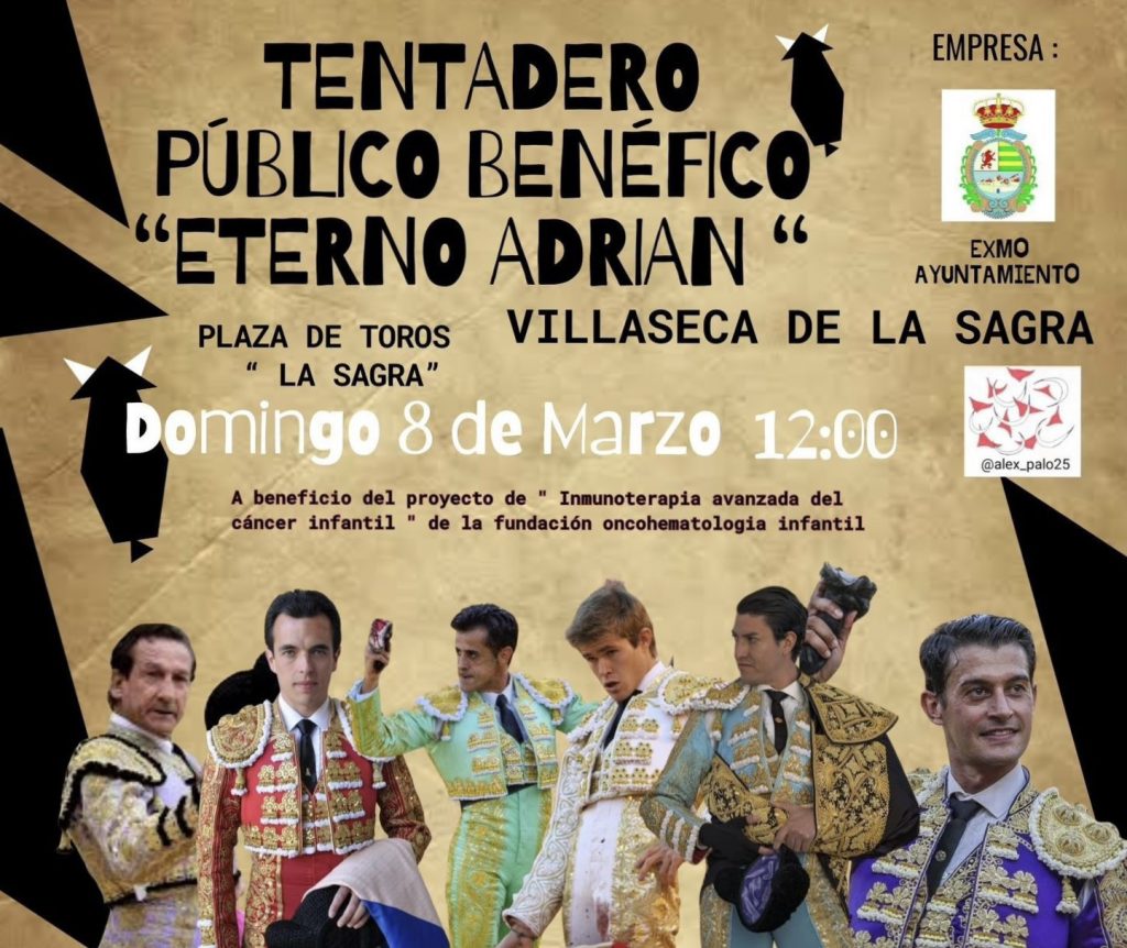 GUARISMO DEL OCHO Villaseca de la Sagra volverá a unir tauromaquia, cultura y solidaridad el próximo domingo 8 de marzo de 2026 con la celebración del Tentadero Benéfico y Gala “Eterno Adrián”, una iniciativa a favor de la investigación contra el cáncer infantil que reafirma el compromiso del municipio con las causas que verdaderamente importan.