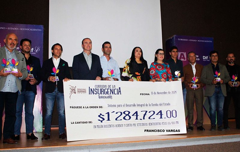 SUERTE MATADOR Un cheque por un millón, 274 mil, 724 pesos fue lo que recibió el DIF del estado de Aguascalientes, producto de lo recaudado el pasado sábado 14 de septiembre de 2024, en la VII edición y, segunda consecutiva en el coso “San Marcos”, de la Corrida de la Insurgencia, así se hizo saber