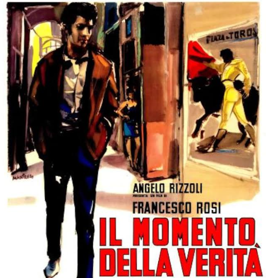 “El momento de la verdad” está reconocida internacionalmente como una de las películas más serias sobre los aspectos socio-culturales del mundo de los toros. Es un melodrama que se aparta de los tópicos para mostrarse crítico y comprometido, con interpretaciones creíbles y escenas taurinas rodadas con realismo y verosimilitud. Pueden verse no sólo las estampas triunfales del toreo, sino también las dificultades y penurias de aquel que quiere alcanzarlas, gracias, sobre todo, a un guión en el que participaron Pedro Beltrán, Ricardo Muñoz Suay y Pere Portabella, además del propio Francesco Rosi. Junto a “Miguelín”, completan el reparto José Gómez Sevillano, Linda Christian, Curro Carmona, Gregorio Sánchez y el torero y actor Pedro Basauri Paguaga, nacido en Eibar. La música es responsabilidad del prolífico Piero Piccioni, que trabajó en más de tres centenares de partituras cinematográficas.
