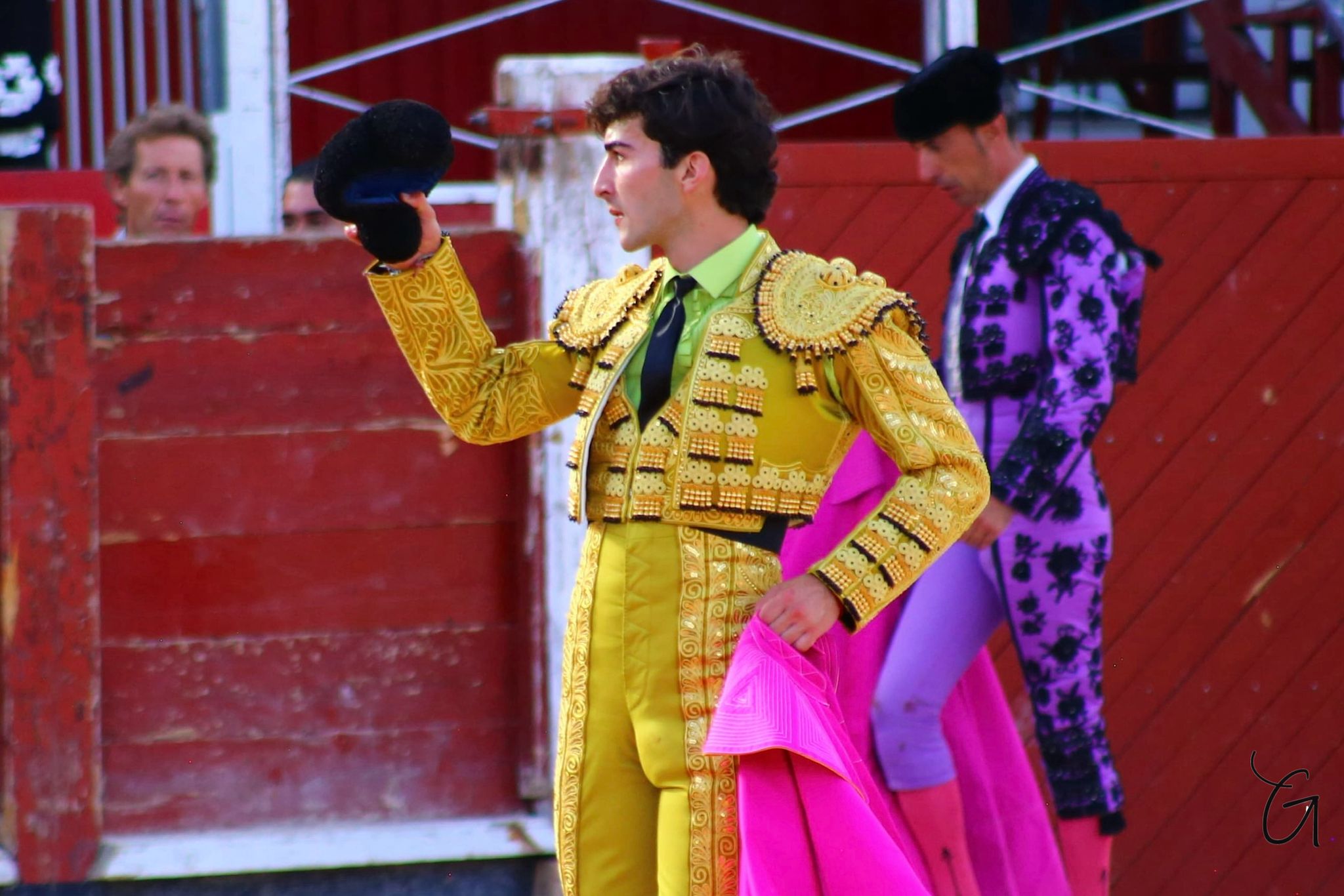 Tomás Angulo abría la tarde con»Farderito», sacándolo por verónicas a los medios hasta rematarlo con una media. Desarrolló un lucido quite por chicuelinas y alcanzada la faena de muleta, lo probó genuflexo por ambos pitones. Se definió por el pitón derecho, teniendo que darle sitio y tiempo para después hacerlo pasar y tratar de limpiar los muletazos de aquellas bruscas embestidas. Cambió al natural, templando al animal, para poder ligar los pases. Tenía que llevarlo de uno en uno, finalizando la tanda con el de pecho. Recuperó el pitón derecho, tratando de torearlo en redondo, llevándole con la muleta baja para ligar los pases. Culminó con naturales ligando pases de mucho peso. Pinchó y al segundo intento metió la espada.