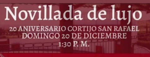 La novillada de lujo prevista para el próximo domingo 20 de diciembre se ha suspendido, sin una fecha para su posible aplazamiento. Un evento diferente y muy especial en el que Joel Delgado «El Panita», Daniel Menés, Patricio Ochoa, José Miguel Arellano, Eduardo Castro y Antonio Magaña se iban a medir a los novillos de Medina Ibarra.
