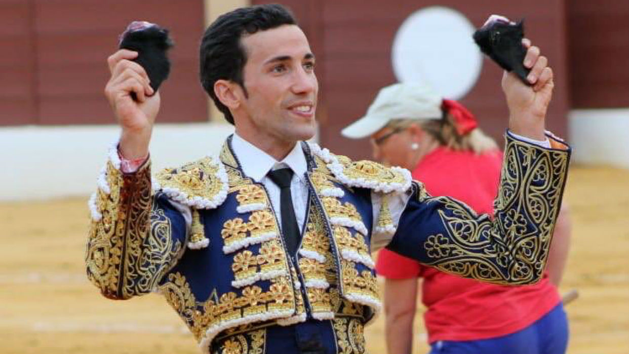 «Sacudido» cerraba el festejo bailando a la verónica, culminando con una media en el capote de David de Miranda. Realizó un quite muy ajustado con mucho aguante por tafalleras. Con la muleta en la mano derecha, en las tablas, genuflexo, le sacó a los medios. Había que llevarle despacio, sabía que tenía toro y que no le sobraban las fuerzas. Le dio tiempo, atemperándole, intentando darle ritmo a la faena. Le cambio de terrenos con media distancia siguió tirando del uno en uno de frente, dándole el pecho afianzado en la arena. Al natural con los pies juntos de frente le citaba para tirar de el, mostraba más recorrido por este pitón, le toreaba de uno en uno con buena colocación, le aguantaba con torería. Volvió a la mano derecha, David insistía en el uno a uno, a pies juntos y dándole el pecho. Cerró al natural y a pies juntos con torería y aguante con muletazos clásicos y elegantes. Ejecutó una estocada certera. Dos orejas.