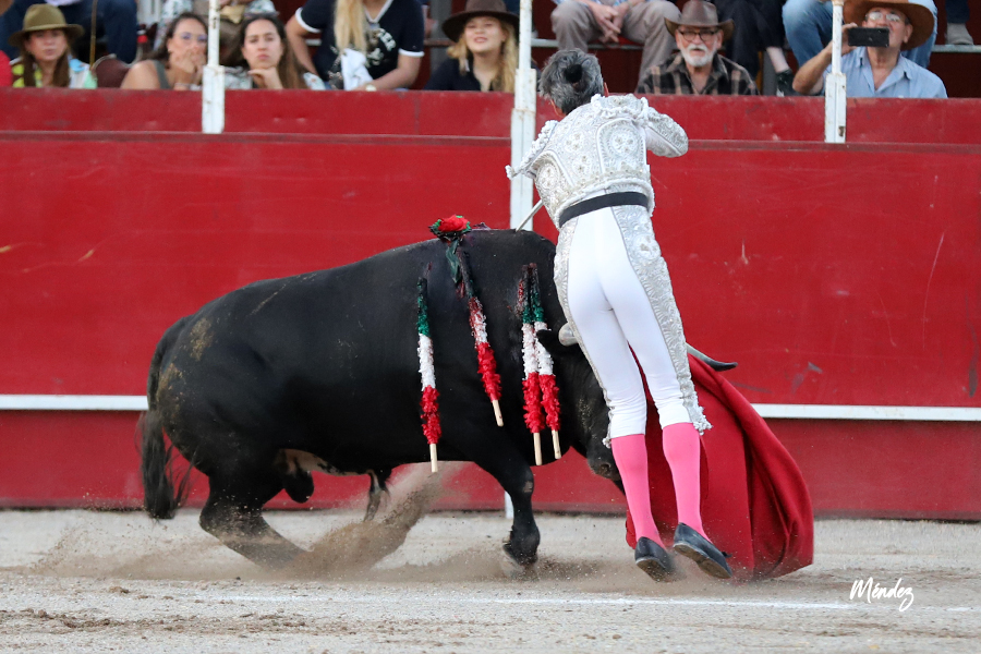 En el de obsequio, “Lajeño”, que no fue fácil, de la misma divisa titular, Diego con evidente actitud veroniqueó con empeño y, en su quehacer de muleta, se dejó ver más que dispuesto en todo momento, con entrega, para dejar pases que le jaleó con fuerza el público. Se tiró a matar con determinación, dejando la estocada, pero, tuvo que descabellar, siendo premiado su pundonor con un apéndice.