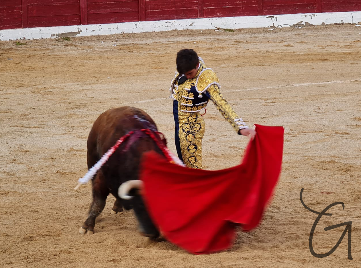 Marcaba el ecuador un ejemplar de Marqués de Quintanar al que Raúl Rivera recibió con una larga cambiada, siguiendo con una habilidad muy torera en el saludo capotero, sacándolo del tercio y mostrando la embestida. El tercio de banderillas cautivó al tendido. Siguió con la emoción, iniciando la faena de rodillas, junta a las tablas, pero el animal, al que había que sostener, cayó a la arena. Raúl le dio tiempo y retomó los primeros compases de una faena que prometía. El de Marques de Quintanar tenía muchas teclas que tocar. El diestro abrió el compás, con naturales muy ajustados en los que se mimaba la fuerza del astado, cuidándolo. Sin embargo, no tenía prontitud, embestía con la cara alta, en dos tiempos y en cuanto tocaba tela, esta se endurecía. Al natural lo llevó con los vuelos, ampliando recorrido, pero el animal requería uno a uno, respetando su sitio, no había que agobiarle, había que dejarlo pasar, aguanto lo que este exigía. Pinchó en hueso, hundiendo el acero al segundo intento.