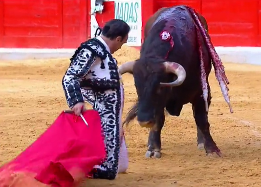 El meridiano del festejo lo protagonizaron Enrique Ponce y «Sainetero». Ponce lo recibió en su capote a la verónica rematando con una media. Probándole le sacó del tercio a los medios y allí con la mano derecha comenzó su faena tirando de «Sainetero», bajándole la mano con temple. El de Chiva, con desmayo, lo toreó girando su cintura con elegancia y torería. Se le veía cómodo y comenzó con su repertorio, ligando muletazos con despaciosidad. Cambió al natural, tiraba de el con su característico movimiento del pico de la muleta y tirón, levantando al tendido. Siguió con la derecha y sus poncinas dejando muletazos eternos. Rodilla en tierra toreó en redondo sintiendo el toreo entre los pitones. Era un toro noble, con molinete y abaniqueo cerró su faena. Pincho y escuchó el aviso,  al segundo intentó hundió la espada algo caída.