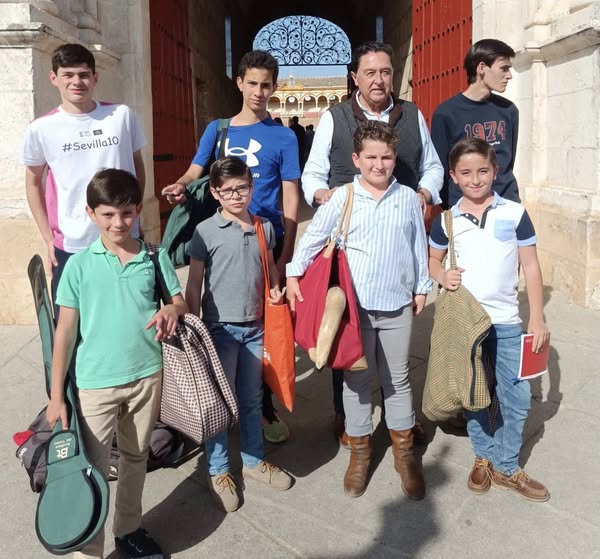 La escuela de Triana-Salesianos, junto a su maestro Tomás Campuzano, ha disfrutado de un día de Puertas Abiertas junto a los más de 6000 aficionados que acudieron al evento organizado por la empresa Pages en la Real Maestranza de Sevilla.
