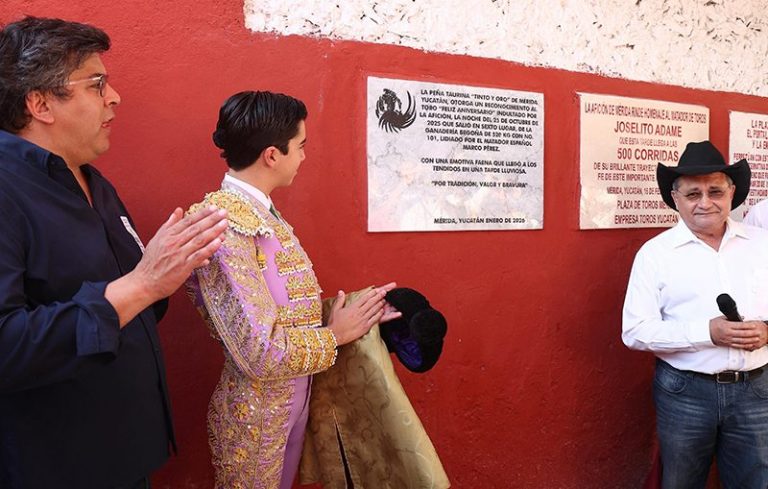 Antes de que diera inicio la corrida blanca en la Plaza de Toros Monumental de Mérida, se llevó a cabo la develación de dos placas conmemorativas en reconocimiento al histórico indulto del toro número 101, “Feliz Aniversario”, de la Ganadería de Begoña, ocurrido el pasado 25 de octubre