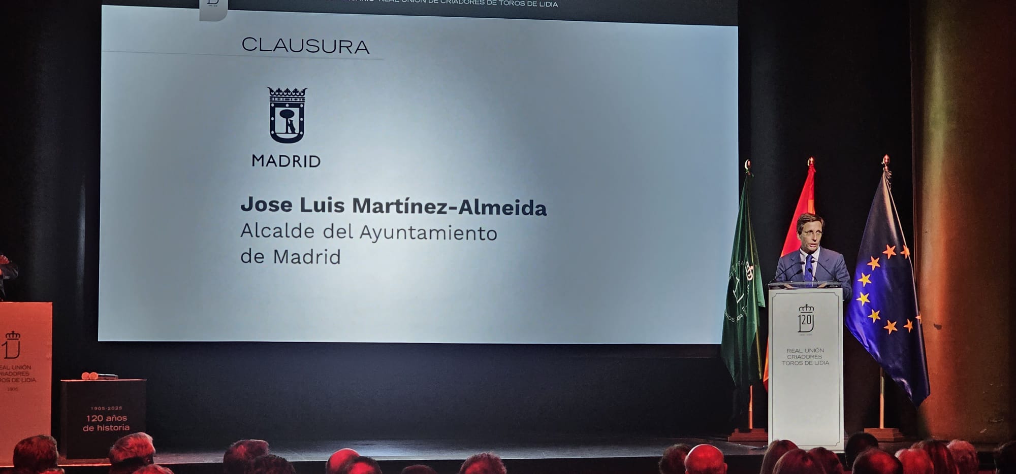 Se culminó con las palabras del Alcalde del Ayuntamiento de Madrid, José Luis Martínez Almeida. Habló de su fundación y del hilo que ha unido pasado y presente, como referencia de la defensa de la cultura. «Nos sentimos orgullosos de que sean fieles a los principios con los que se fundó hace 120 años. Trabajando desde la memoria, que es la mejor forma de evolucionar. Hoy aquí todos debemos reconocer el papel que tienen los ganaderos», explicaba. Tampoco faltaron unas palabras al maestro Ponce y a todos los ganaderos. «Desde aquí siempre podrán contar con nosotros, porque son cultura en mayúsculas», culminaba.