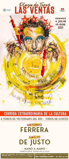 El domingo 4 julio (19:00h). se celebrará la ‘Corrida de la Cultura’, con Antonio Ferrera y Emilio de Justo mano a mano para lidiar un encierro de Victoriano del Río. Regresará Ferrera tras su doble puerta grande en la temporada 2019, en la feria de San Isidro y en su encerrona en la Feria de Otoño, y lo hará Emilio de Justo en plenitud, con un balance de cinco puertas grandes en los cinco festejos que ha lidiado en este 2021.