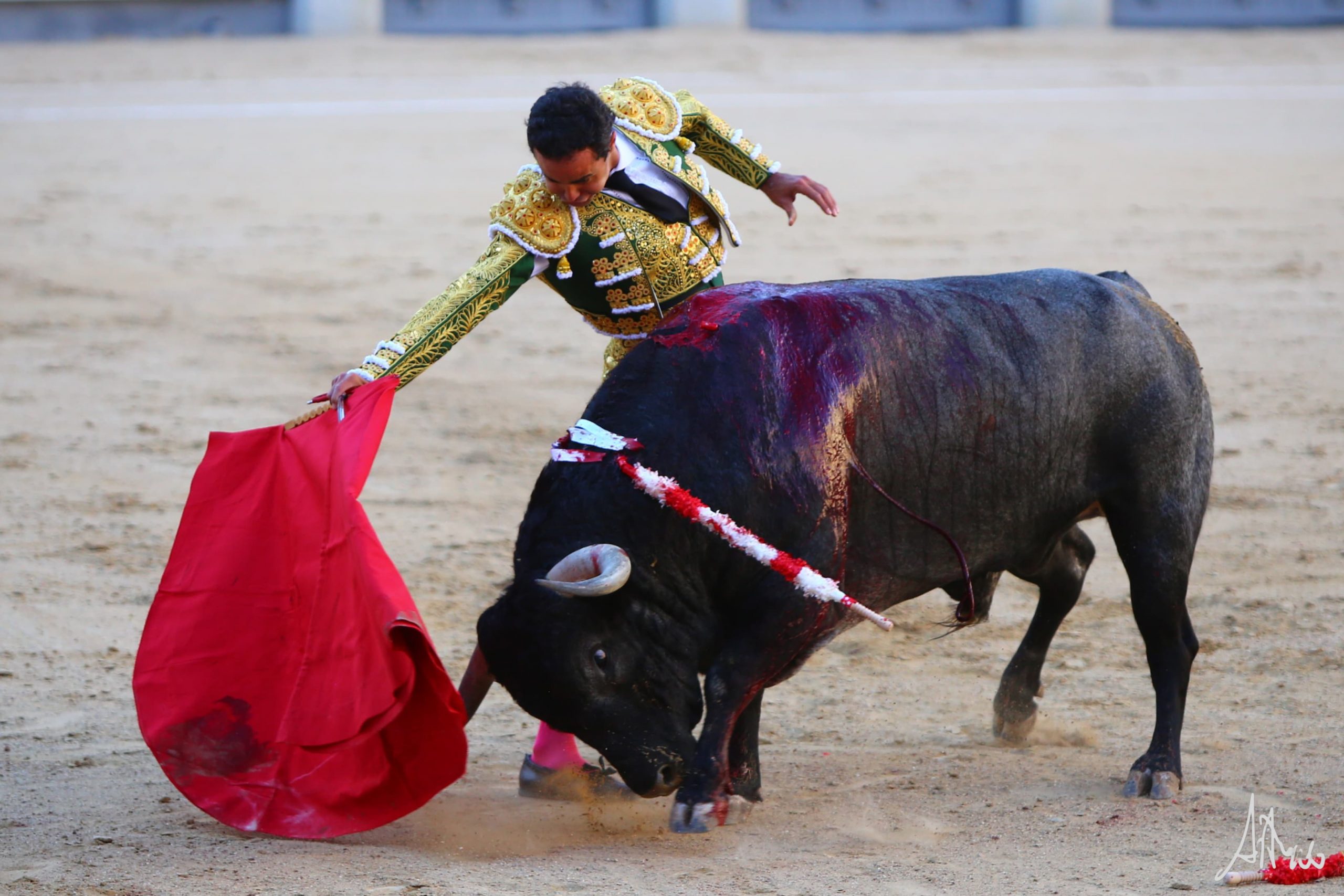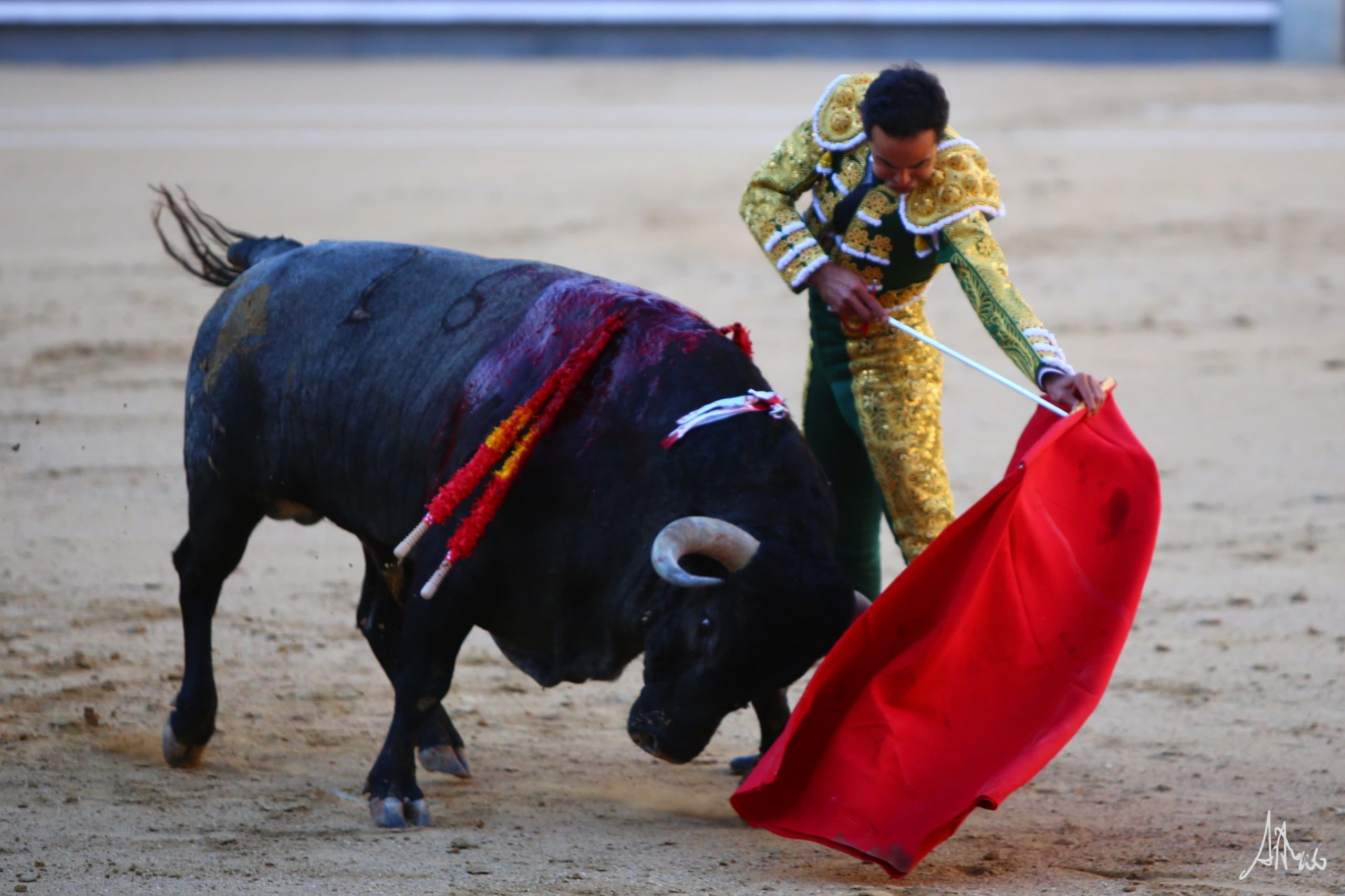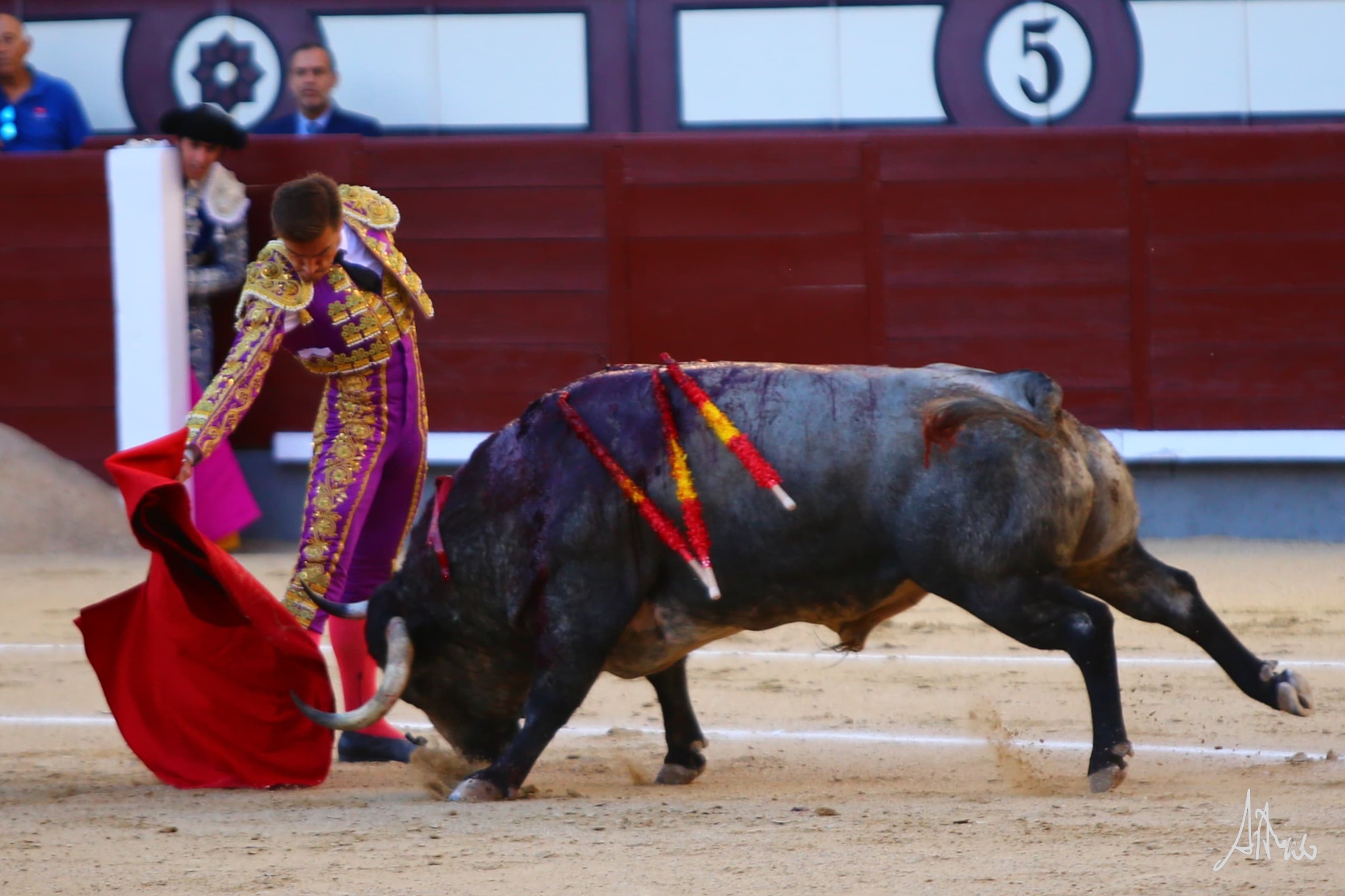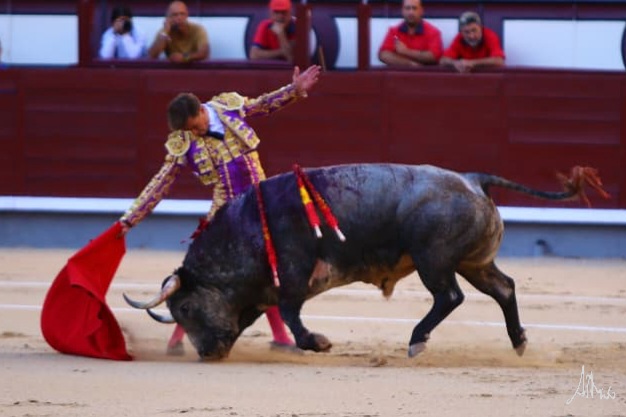 Luis Gerpe bregó con «Higuerito» de Partido de Resina en su saludo capotero. Pasó por el caballo sin emplearse a fondo. Se desmonteró Mehdi Savalli por su actuación en banderillas. Obligándole por abajo y sacándolo del tercio quiso comenzar Luis su faena. Siguió por el derecho, dejando una tanda reconocida en el tendido, sin embargo, el viento molestaba y tuvo que cambiar los terrenos buscando donde seguir con su faena. No terminaba de acoplarse con el. Le dio tiempo y sitio y a media altura lo fue pasando en su muleta aguantando. Cambió al natural y logró una tanda de peso, cruzándose con el y tirando mientras aguantando. Retomó el derecho y con la muleta planchá y acompasando con la cintura dejó una última tanda reconocida en el tendido. Genuflexo hizo su epílogo y lo mató con acierto.