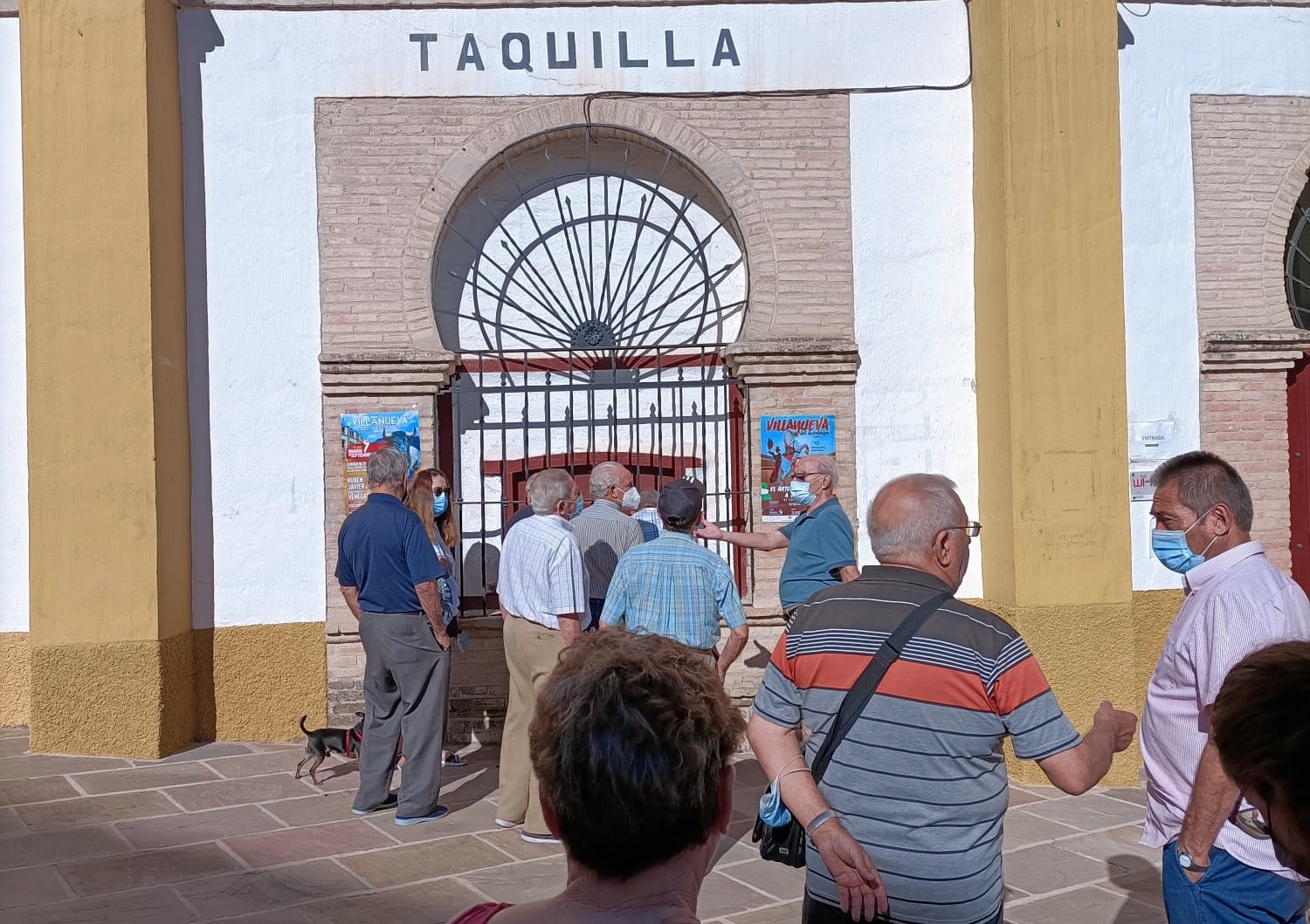 Los aficionados responden en el primer día de apertura de taquillas en Villanueva del Arzobispo, Jaén, desde primera hora de la mañana.