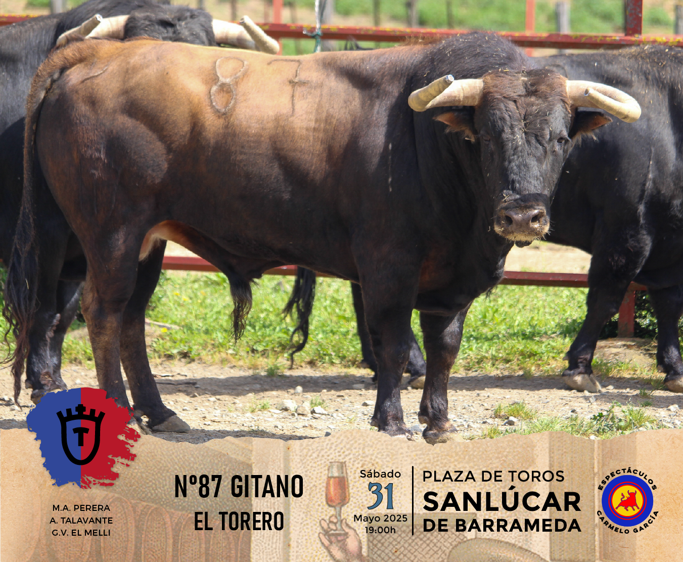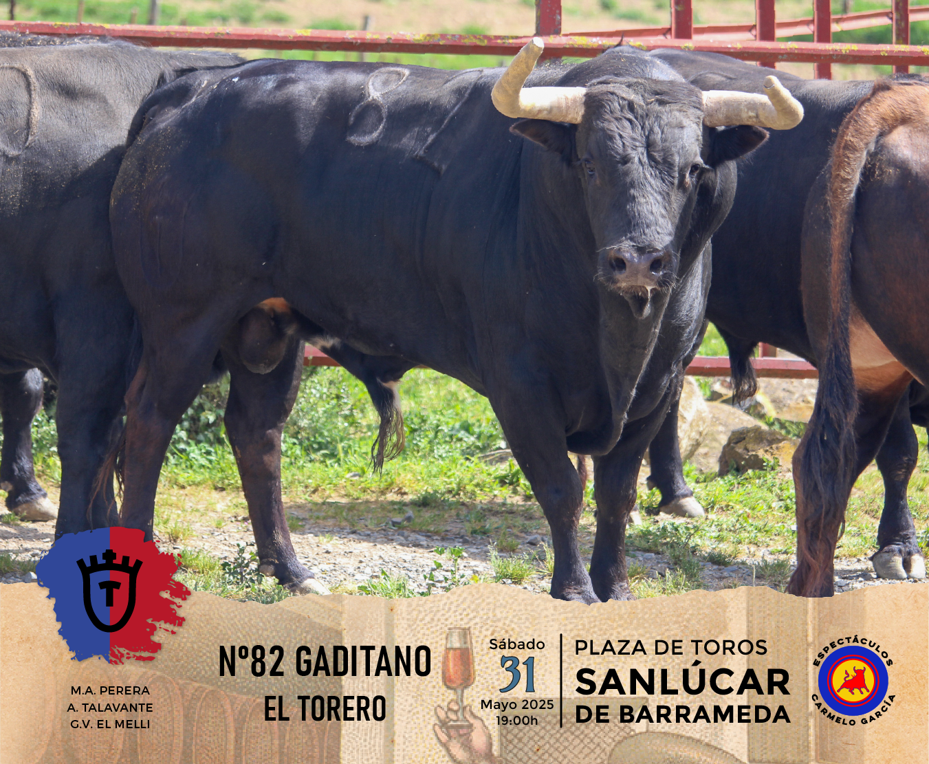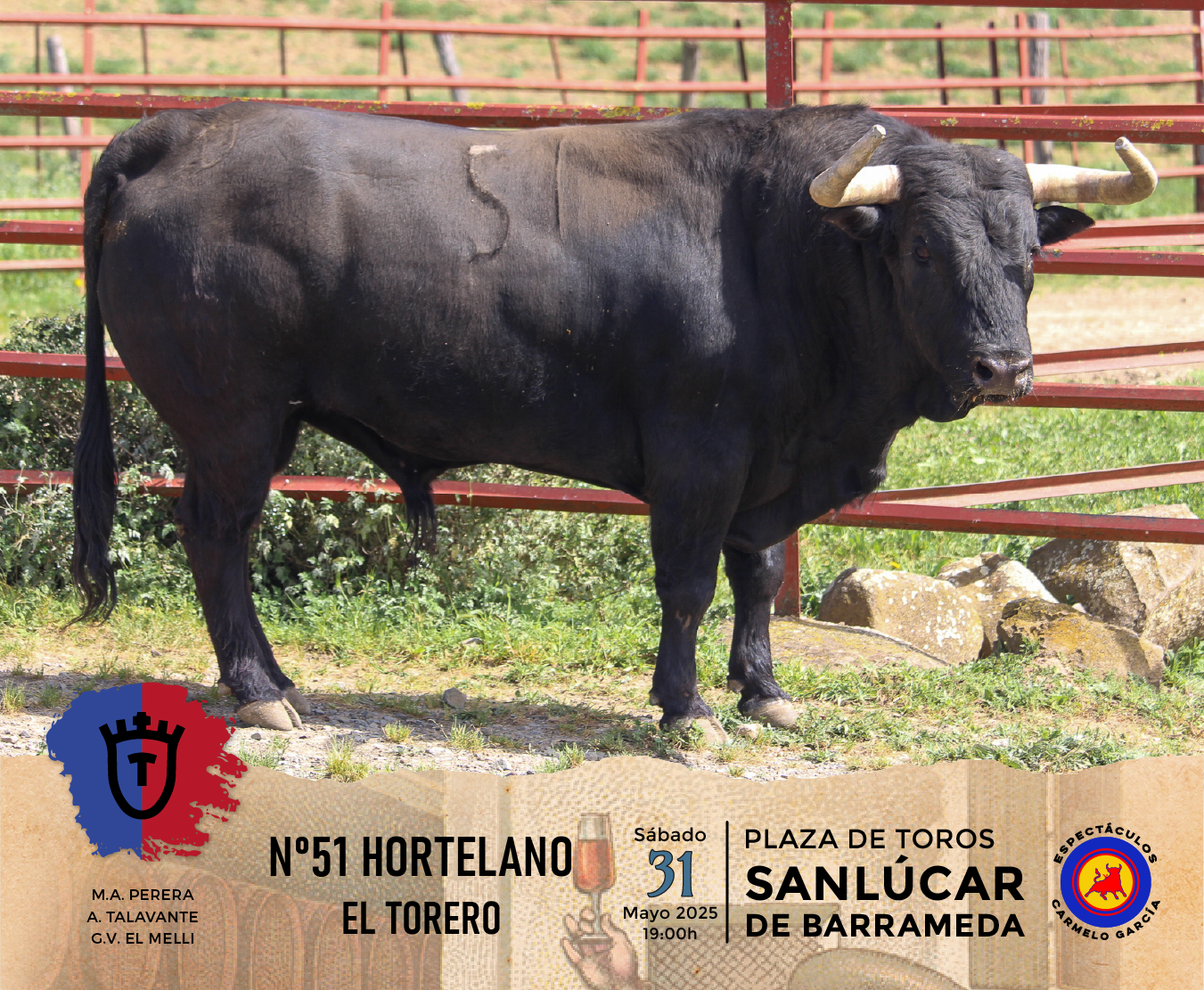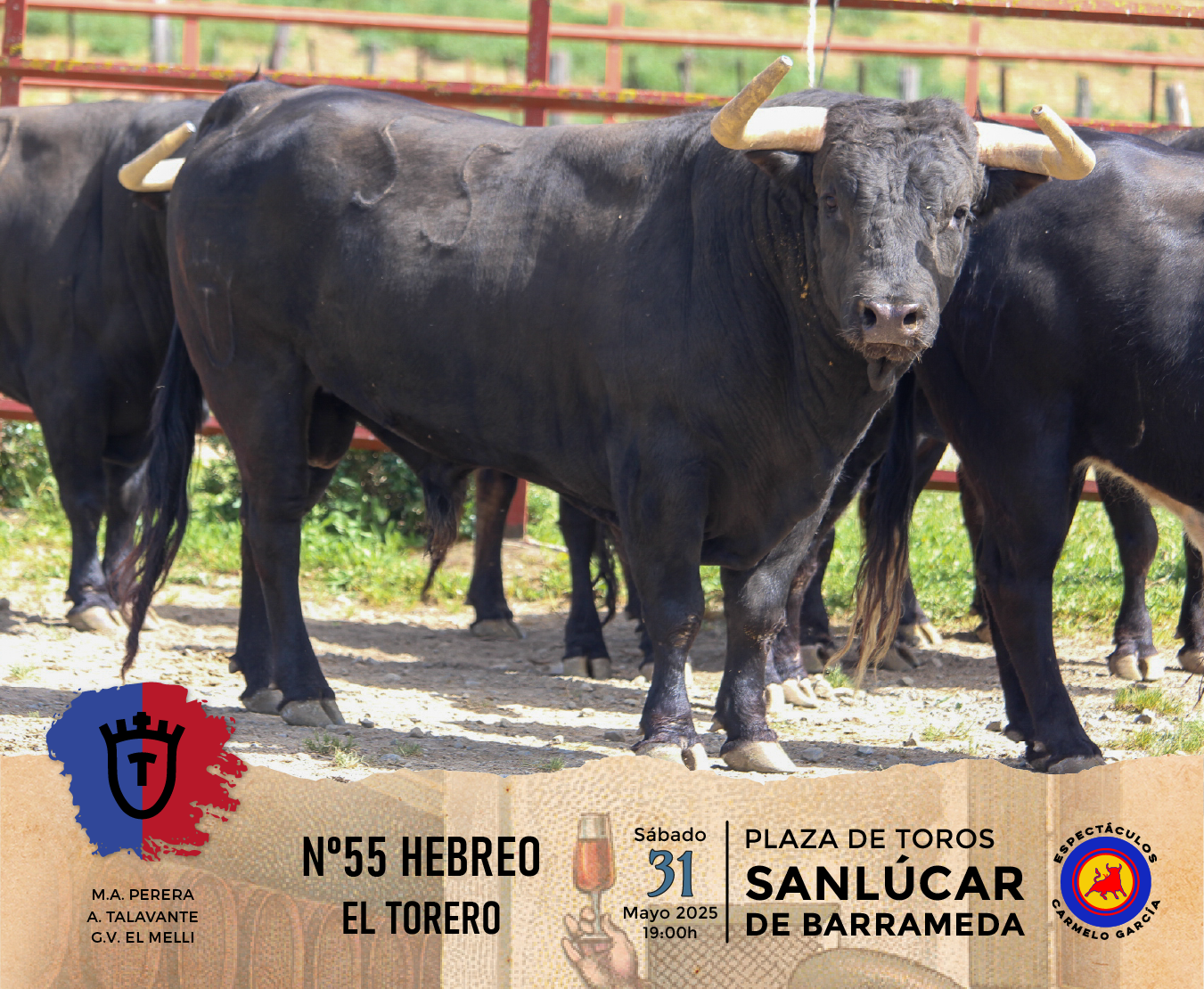 Los toros de la ganadería El Torero reseñados para la corrida de toros de la Feria de la Manzanilla, en Sanlúcar de Barrameda que lidiarán Miguel Ángel Perera, Alejandro Talavante y Germán Vidal “El Melli”, en el año del 125 Aniversario Coso del Pino.