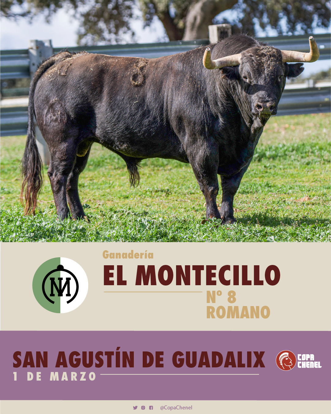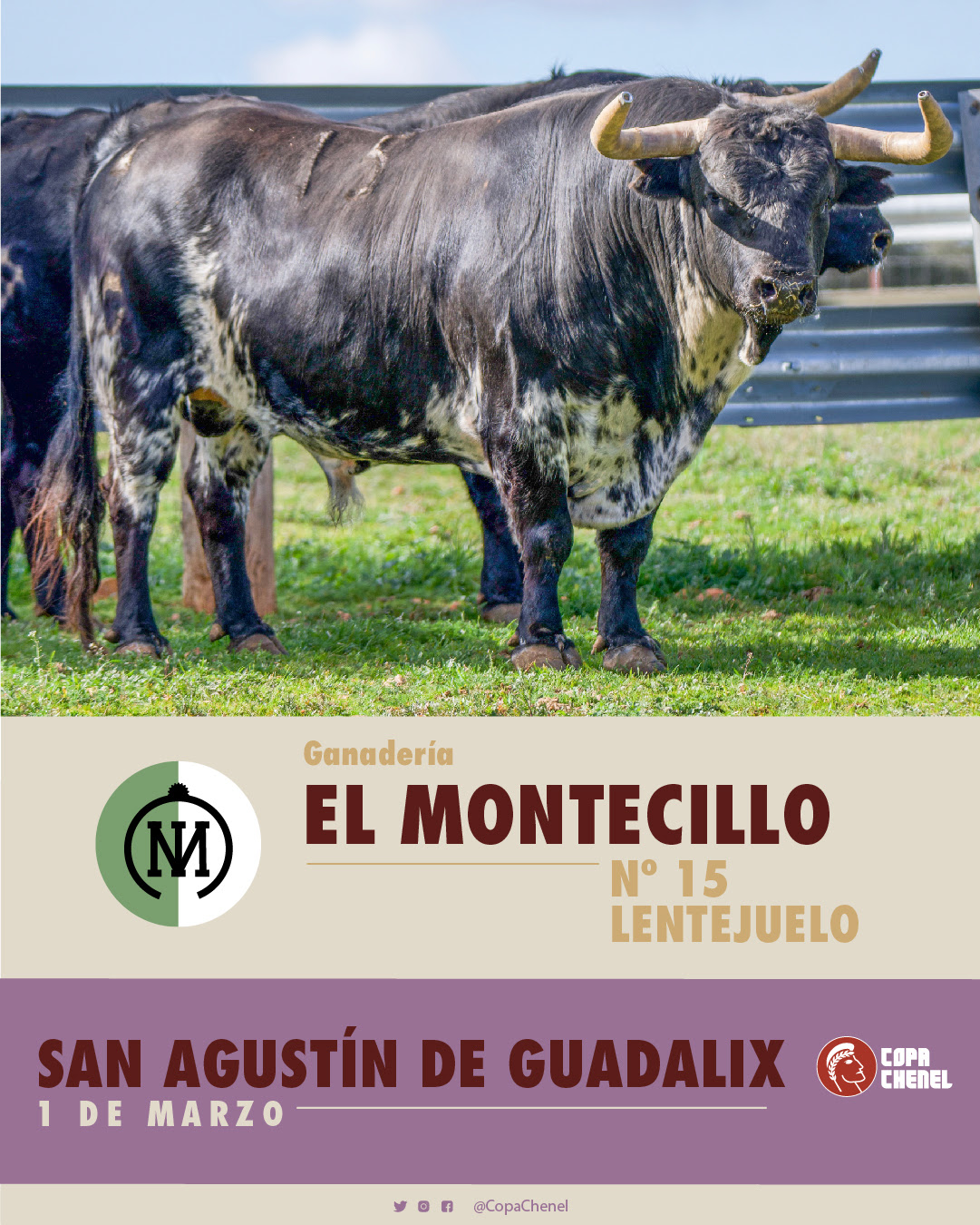 Agustín Montes, de la ganadería madrileña de Montealto, llega con grandes expectativas tras el éxito cosechado en esa misma plaza en años anteriores. “Los toros reseñados están elegidos a conciencia, bien hechos y correctamente presentados tanto para la plaza como para la importancia de la Copa Chenel”, afirma Montes. El ganadero recuerda con cariño su paso por San Agustín del Guadalix la temporada pasada, sobre todo cuando lidió al toro Farolero, un ejemplar que dejó huella y se convirtió en uno de los mejores toros del certamen.