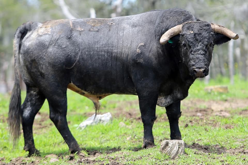 No. 413 Cárdeno oscuro, bragado, nevado de los cuartos traseros, cornivuelto (La Soledad)