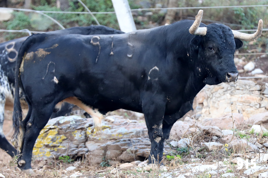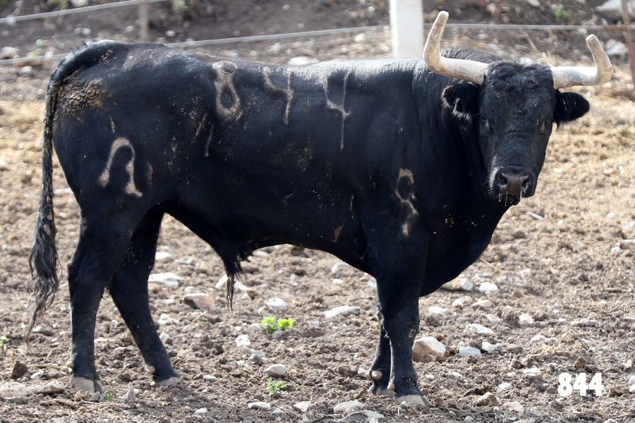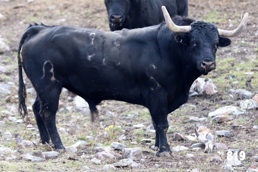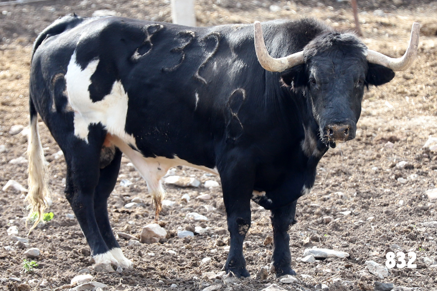 No. 832, «Cardifresco», berrendo en negro, bragado corrido, coliblanco, jarretero, meleno, gargantillo y vuelto de pitones.