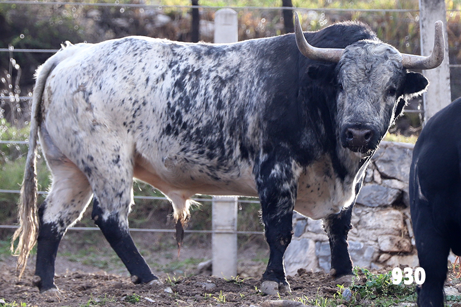 No. 930, «Cardicito», de pelaje berrendo en cárdeno, alunarado, coliblanco, calcetero, careto, bocinero, gargantillo y vuelto de pitones.