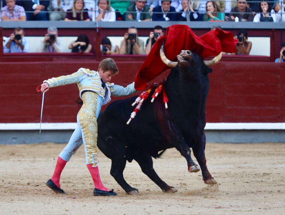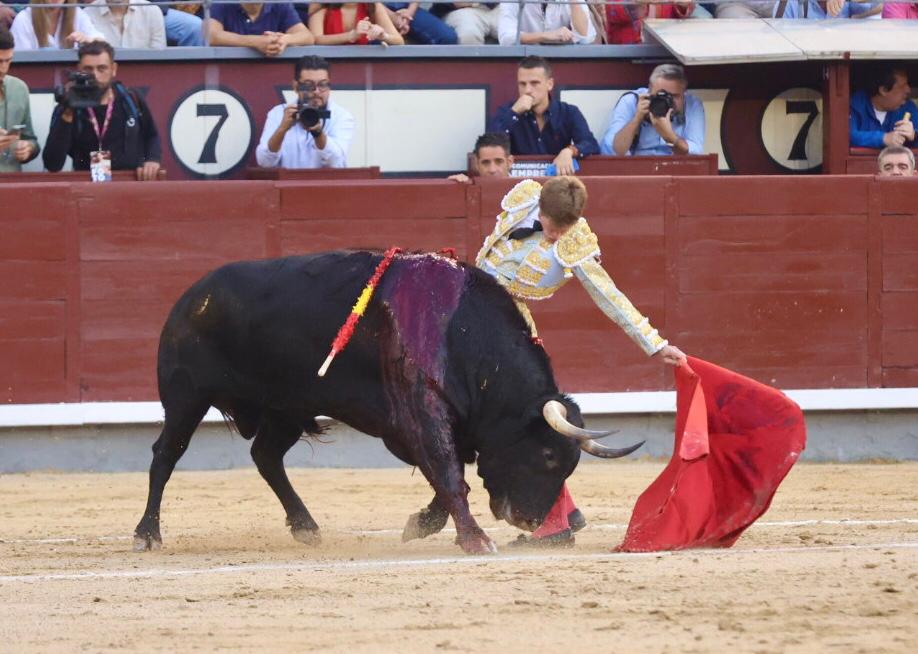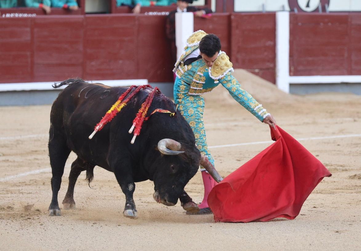 Salió suelto el quinto, al que llegó Borja Jiménez sin poder estirarse con el. Lo recibió en la muleta bajo los terrenos del siete, tanteándolo por ambos pitones, bajándole la mano. Se lo llevó más allá del tercio y siguió sobre el derecho, envolviéndoselo en una tanda aplaudida en los tendidos. Le dio tiempo y sitio para continuar por el derecho, tocando y llevando, pasando a un toro que humillaba y seguía el engaño. Supo dosificar muy bien el sevillano, desarrollando tandas cortas, pero bien llevadas. Cambió al natural, logrando algunos pases largos y profundos, aunque no suficientes para redondear su labor. Sin llevarlo más allá del tercio, siguió con un toreo a pies juntos y aunque el toro pasaba, sus embestidas no tenían el suficiente calado. Culminó metido entre pitones, poniendo todo, estando por encima de su oponente.