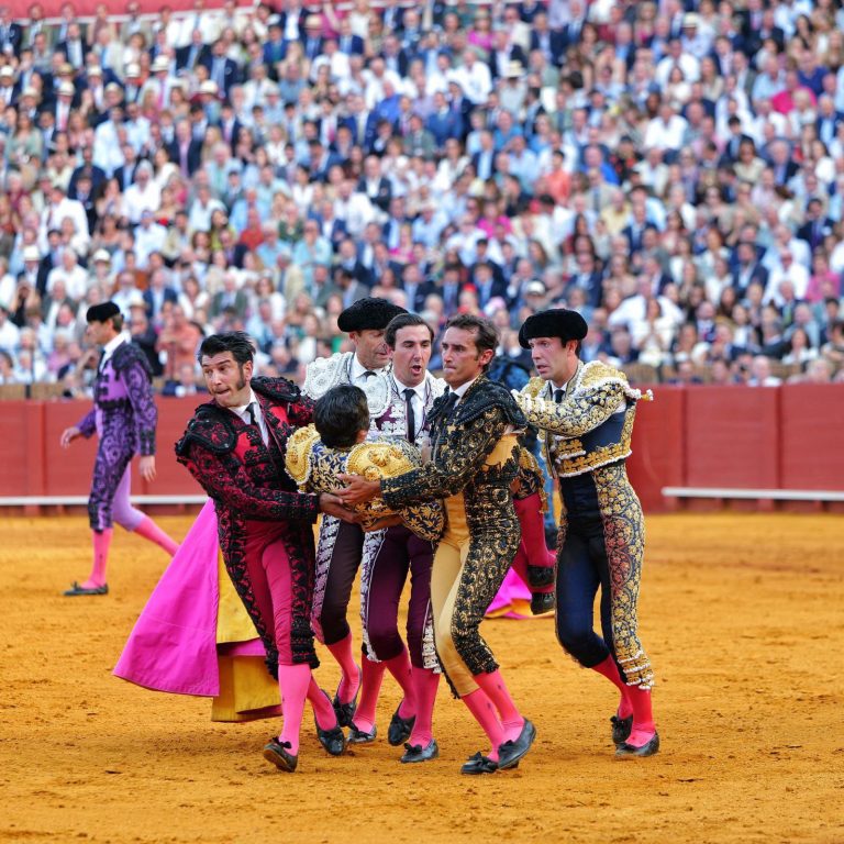 El diestro Morante de la Puebla resulto herido por el cuarto de la tarde, un toro de Hermanos Garcia Jiménez, teniendo que ser trasladado a la enfermería de la Real Maestranza de Sevilla, donde esta siendo intervenido de una herida por asta de toro en el glúteo.