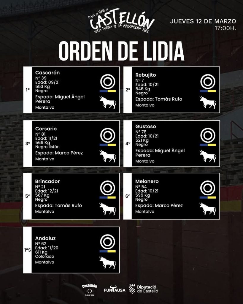 Orden de lidia para Castellón