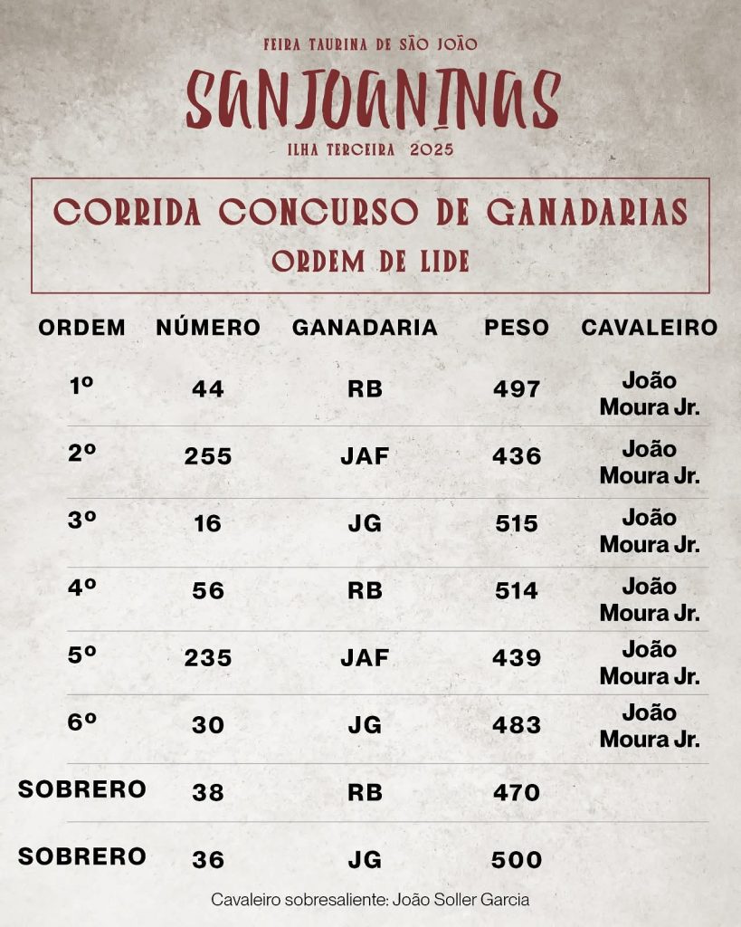 Orden de lidia para las Sanjoaninas