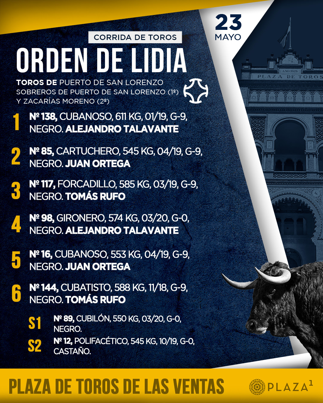 Orden de lidia para Madrid