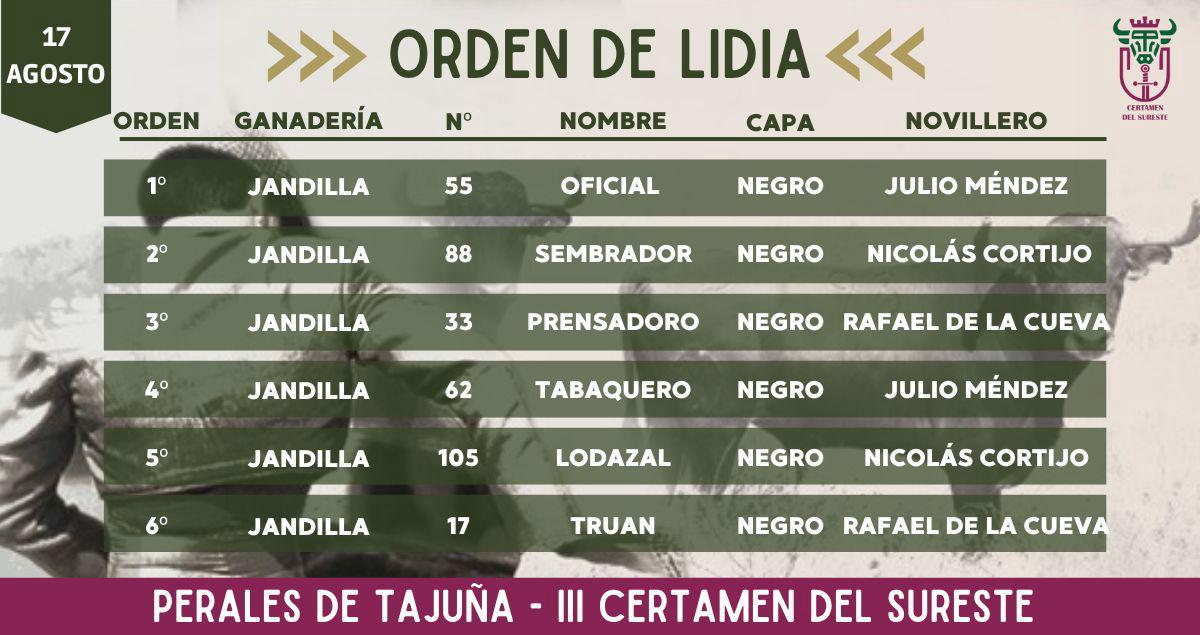 Orden de lidia para Perales de Tajuña