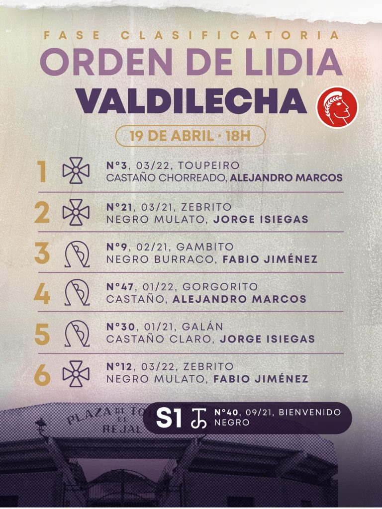 Valdilecha albergará la cuarta corrida clasificatoria de la Copa Chenel, con Toros de Sao Torcato (Pinto Barreiros) y Buenavista para Alejandro Marcos, Jorge Isiegas y Fabio Jiménez.