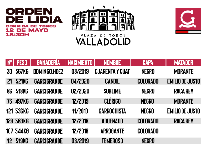 Orden de lidia para Valladolid