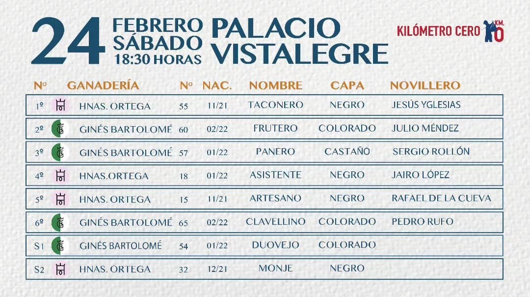 Orden de lidia para Vistalegre