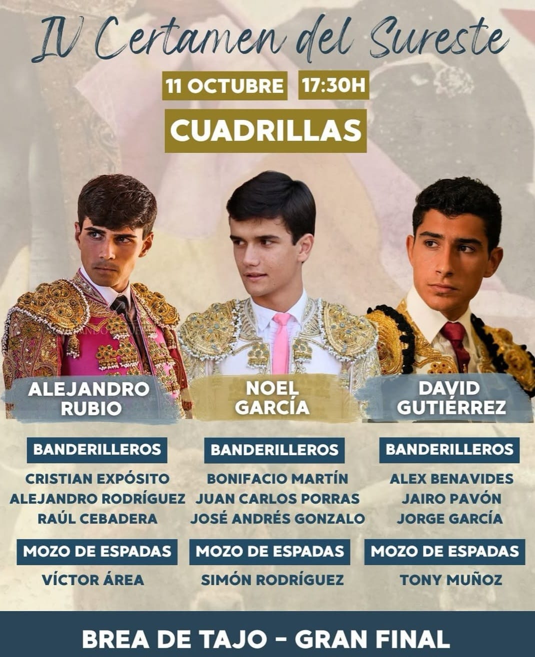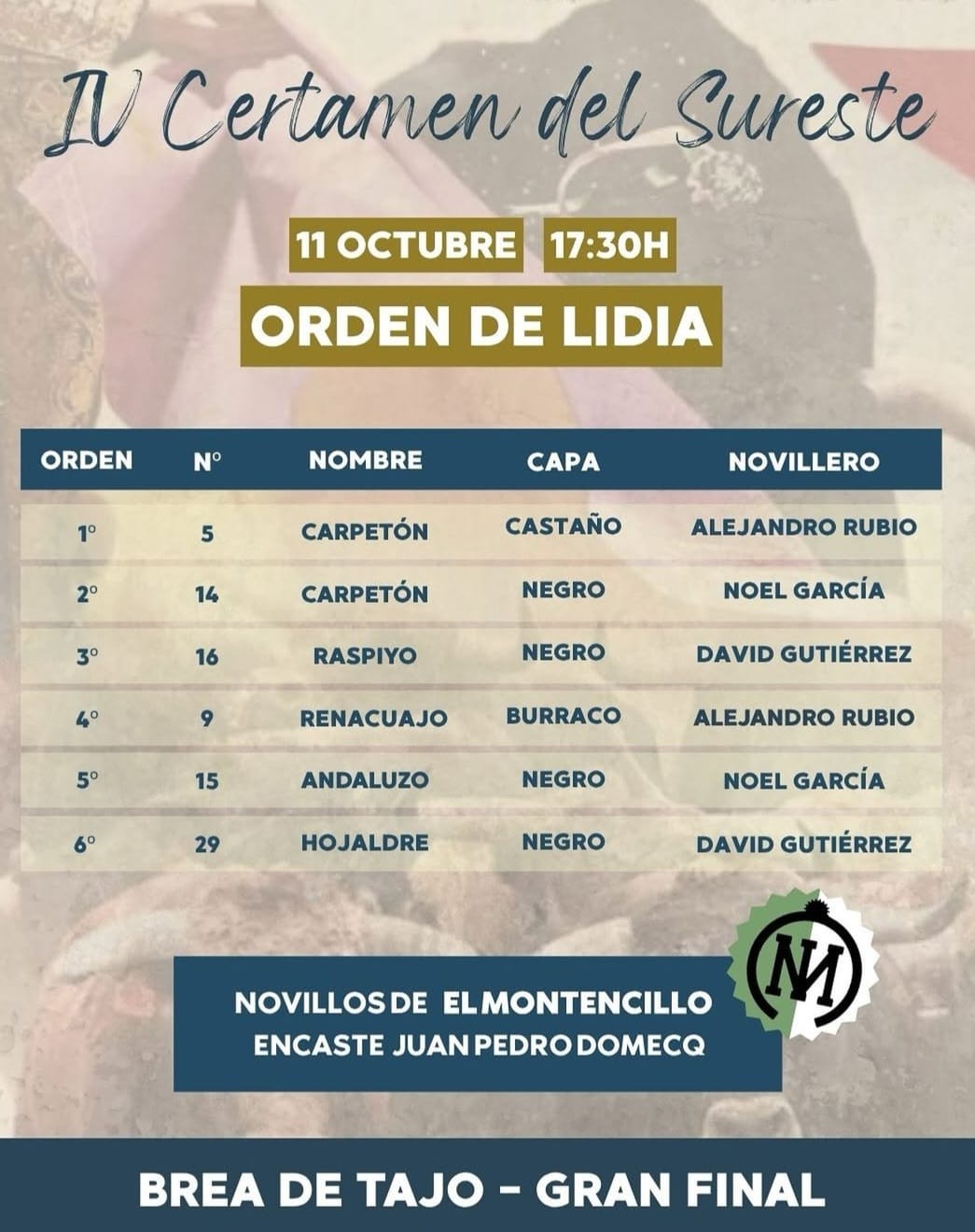 Orden de lidia y cuadrillas para Brea de Tajo