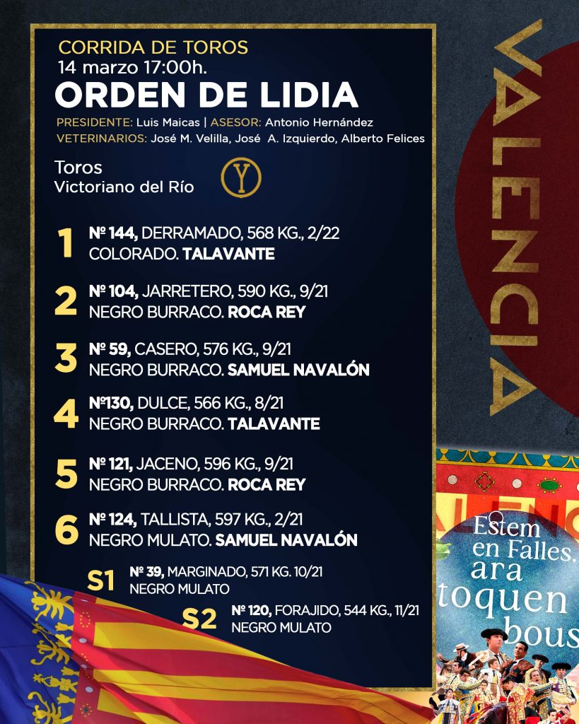 Cartel de ‘No hay billetes’ en las taquillas de la Plaza de Toros de Valencia para la gran cita de hoy, cuarta de abono de la Feria Taurina de Fallas, para la que ya han sido sorteados seis toros de Victoriano del Río. A las 17h. harán el paseíllo Alejandro Talavante, Roca Rey y Samuel Navalón.