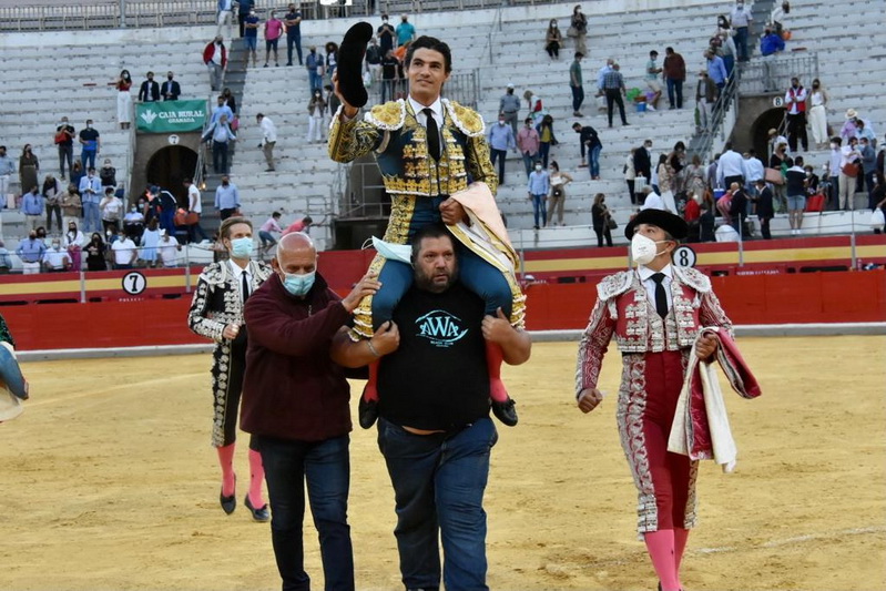 Granada. Cuarta y última de feria. Tres cuartos de aforo con el límite permitido. Cinco toros de Hermanos García Jiménez, el primero como sobrero y uno de Daniel Ruiz que hizo quinto como segundo sobrero. Nobles en líneas generales, segundo y quinto con más movilidad. Morante, silencio y oreja; Manzanares, ovación, en ambos; Pablo Aguado, dos orejas y ovación.