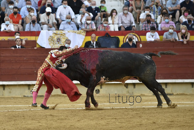 Buen saludo capotero de Paco Ramos a un Miura de capa saldo que recibió una ovación sonora de salida. Se arrancó al caballo con mucha alegría empujando al caballo que montaba Paco Plazas que fue ovacionado por la forma de colocar la puya y medir el castigo. En banderillas saludaron David Esteve y Diego Valladar. En la muleta el toro se vino abajo y se quedaba a mitad del muletazo. Paco Ramos lo despachó de una estocada atravesada. Vuelta al ruedo tras fuerte petición de oreja.