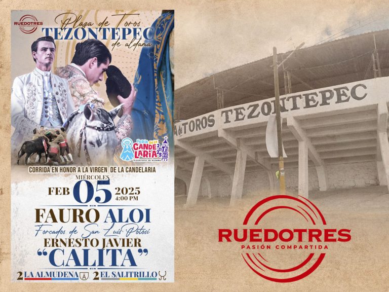 Ruedo Tres volverá a dar toros en el estado de Hidalgo, en este caso en Tezontepec de Aldama, con una corrida mixta programada el miércoles 5 de febrero, en la que van a torear el rejoneador Fauro Aloi y Ernesto Javier «Calita», con dos toros de La Almudena para rejones, y otros dos de El Salitrillo para la lidia a pie.