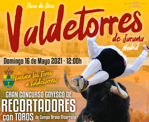Valdetorres de Jarama descubre el cartel de su Gran Concurso Goyesco de Recortes que se celebrará el próximo domingo 16 de mayo a las 12:00 horas. Los concursantes se medirán a los toros del Campo Bravo Alcarreño.