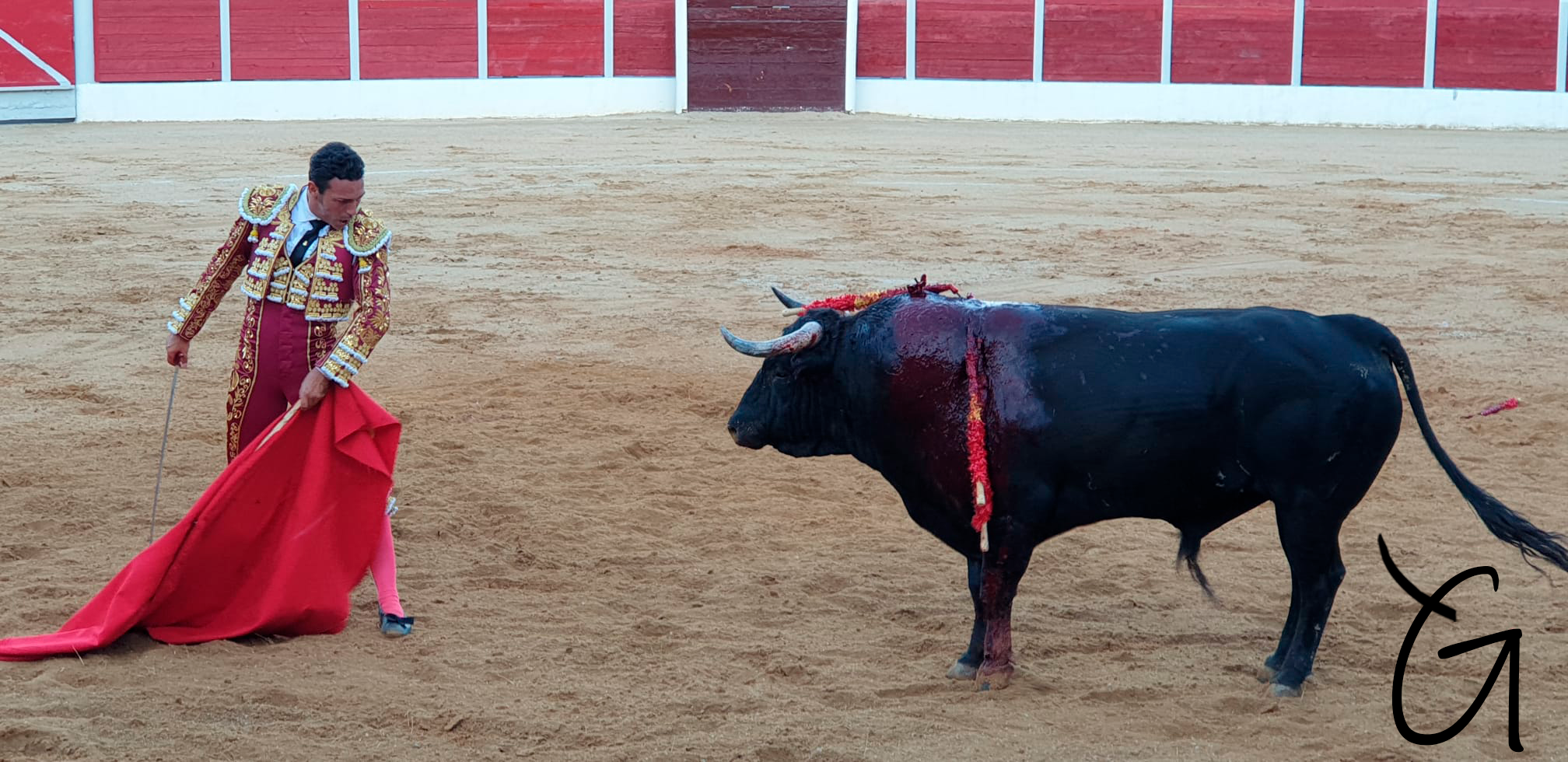 Gómez del Pilar lo recibió a Porta Gayola para después estirarse a la verónica con el segundo de la tarde. Inició la faena genuflexo, esperándole, probándole, con muletazos muy suaves. El animal remataba por alto. Le sacó del tercio y empezó a llevarlo en largo, con un trazo largo al ralentí. Las distancias cortas jugaron un papel muy importante en la faena de Gómez del Pilar, pues el astado necesitaba tiempo, pero también mucha dedicación. Había que exigirle, bajándole la mano, buscándole cada muletazo y aprovechando el escaso motor del astado. Cada vez acortaba más el recorrido y el diestro lo exprimió en cercanías, tentando a las medias arrancadas. Culminó con manoletinas y molinete. La espada entró al segundo intento.