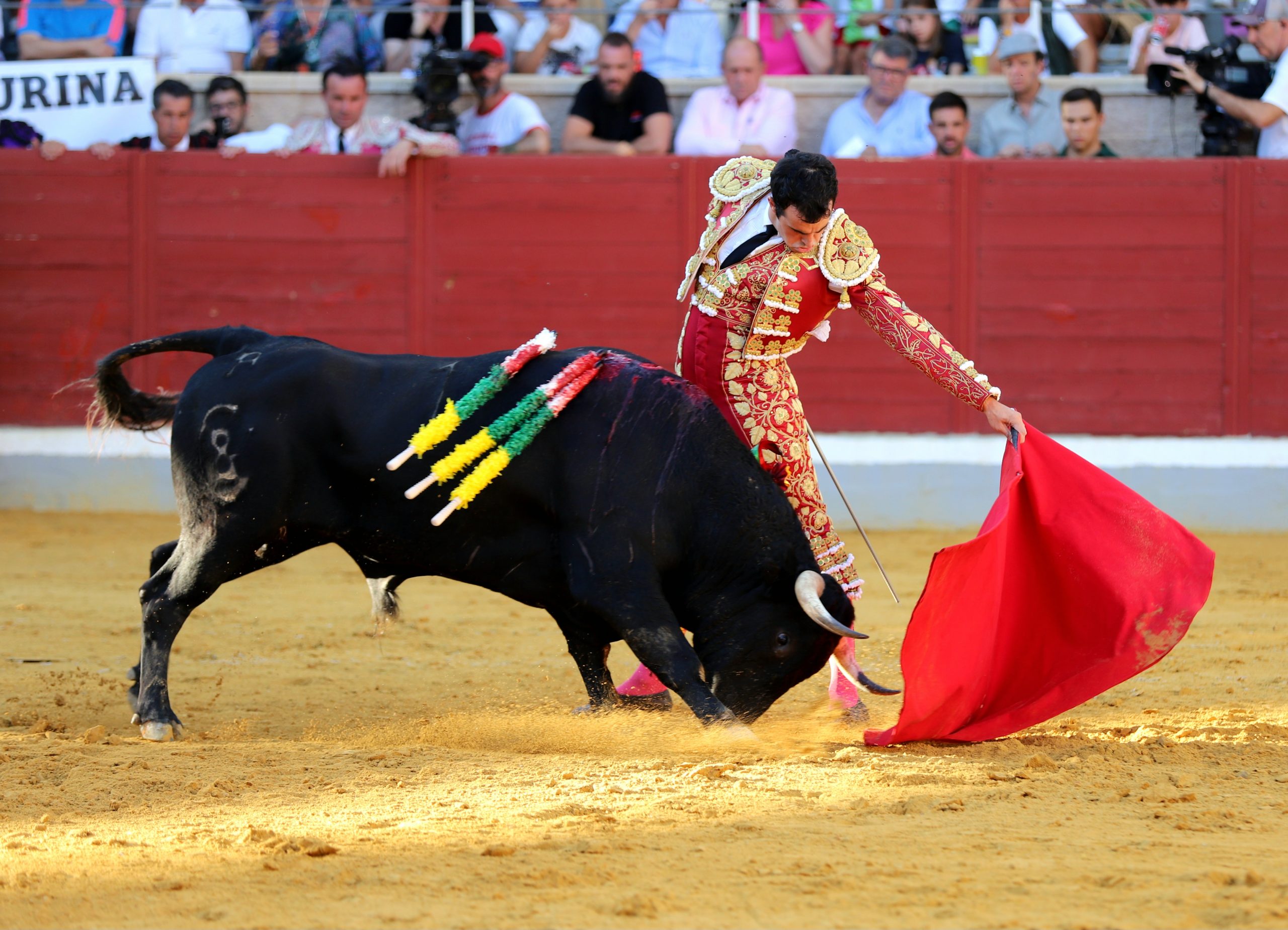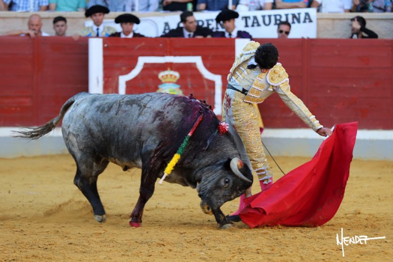 Recibió Neyra al abreplaza, un novillo suelto con el que se salió rápido a los medios para bregarlo y emcelarlo. Una vez recogida la embestida se cambió el tercio. Se alcanzó la faena de muleta y Neyra lo inició toreando, sin probaturas, fuera del tercio, empezando a media altura, esperando la embestida, buscando el acople y desplazarlo muy despacio. Siguió por el derecho pero se quedaba corto aquel toro de Barcial que metía bien la cara y se mantenía fijo en la tela, pero sin fuerza. Se movió a base de arreones y es que tampoco daba para mucho más. Consiguió llegar a los tendidos. Cambió al pitón izquierdo, pero no podía, pasaba como podía, con intenciones de irse a las tablas. Retomó las tandas por el derecho, llevándolo embebido en la tela, apurando las distancias con aquel novillo de embestidas mermadas y muy condicionadas. No estuvo muy certero con los aceros.